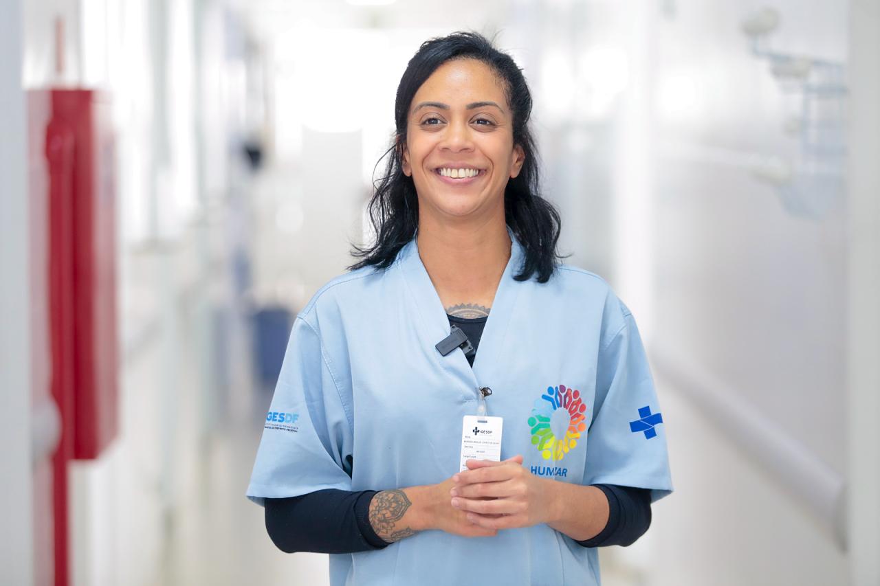 Assistente do projeto Humanizar na UPA do Gama, Geísa Albuquerque, que participou do treinamento de RCP, reforça: “Mesmo que a gente não esteja ali diretamente na assistência, a gente aprende um pouquinho e pode ajudar de alguma forma”.