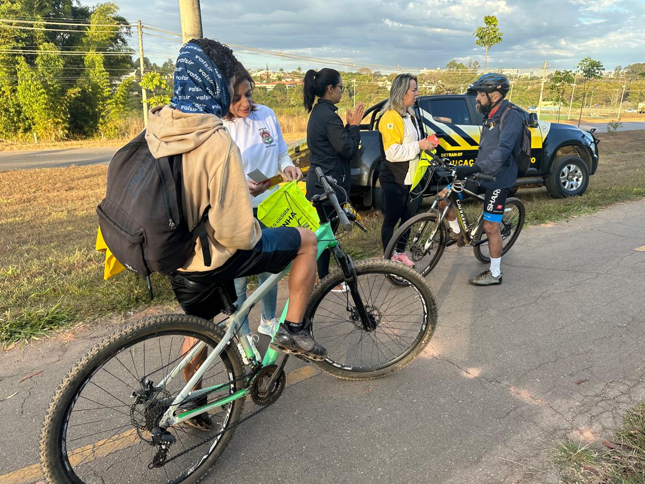 Na manhã de sexta, o projeto Bike em Dia esteve na ciclovia na entrada da cidade, atendendo por volta de 70 pessoas com palestras educativas e materiais gráficos voltados para a circulação segura dos ciclistas no trânsito.
