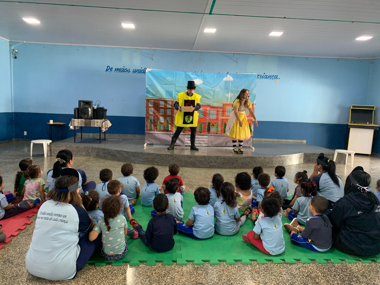 Os pequenos do Lar das Crianças Luiz Hernani assistiram ao espetáculo Contação de Histórias, na sexta. De forma bem lúdica, cerca de 70 crianças aprenderam sobre travessia na faixa e uso do cinto de segurança, entre outras regras de trânsito.