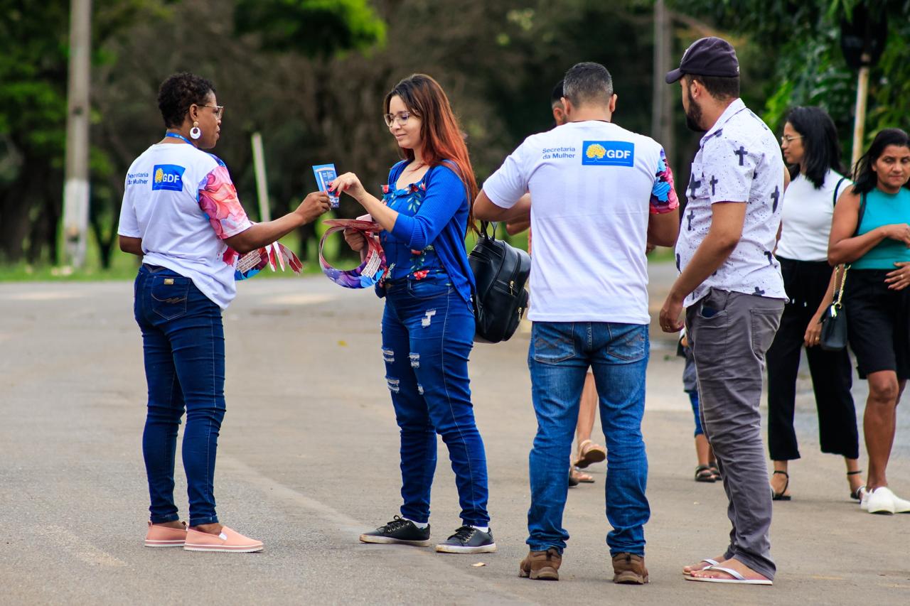 Equipes da Secretaria da Mulher participam da ação e ajudam a informar a comunidade sobre seus direitos | Foto: Vinicius de Melo/SMDF