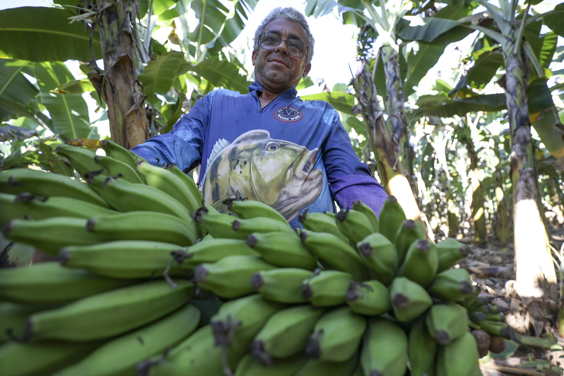 O apoio da Emater-DF foi essencial para o desenvolvimento da propriedade rural do produtor Wellington Rodrigues, 46 anos. Nascido em Minas Gerais, ele chegou a Sobradinho em 1994 junto à mãe e aos oito irmãos. Em 2005, conseguiu adquirir uma área na Fercal e iniciou os plantios. Nos primeiros anos, dedicou-se inteiramente à mandioca, mas, a partir de 2016, abriu espaço para uma nova cultura: a banana.