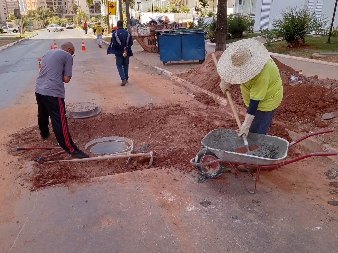As obras no sistema de drenagem são vistas como uma solução necessária para reduzir o fluxo de água que chega à quadra 207 | Foto: Divulgação/Novacap