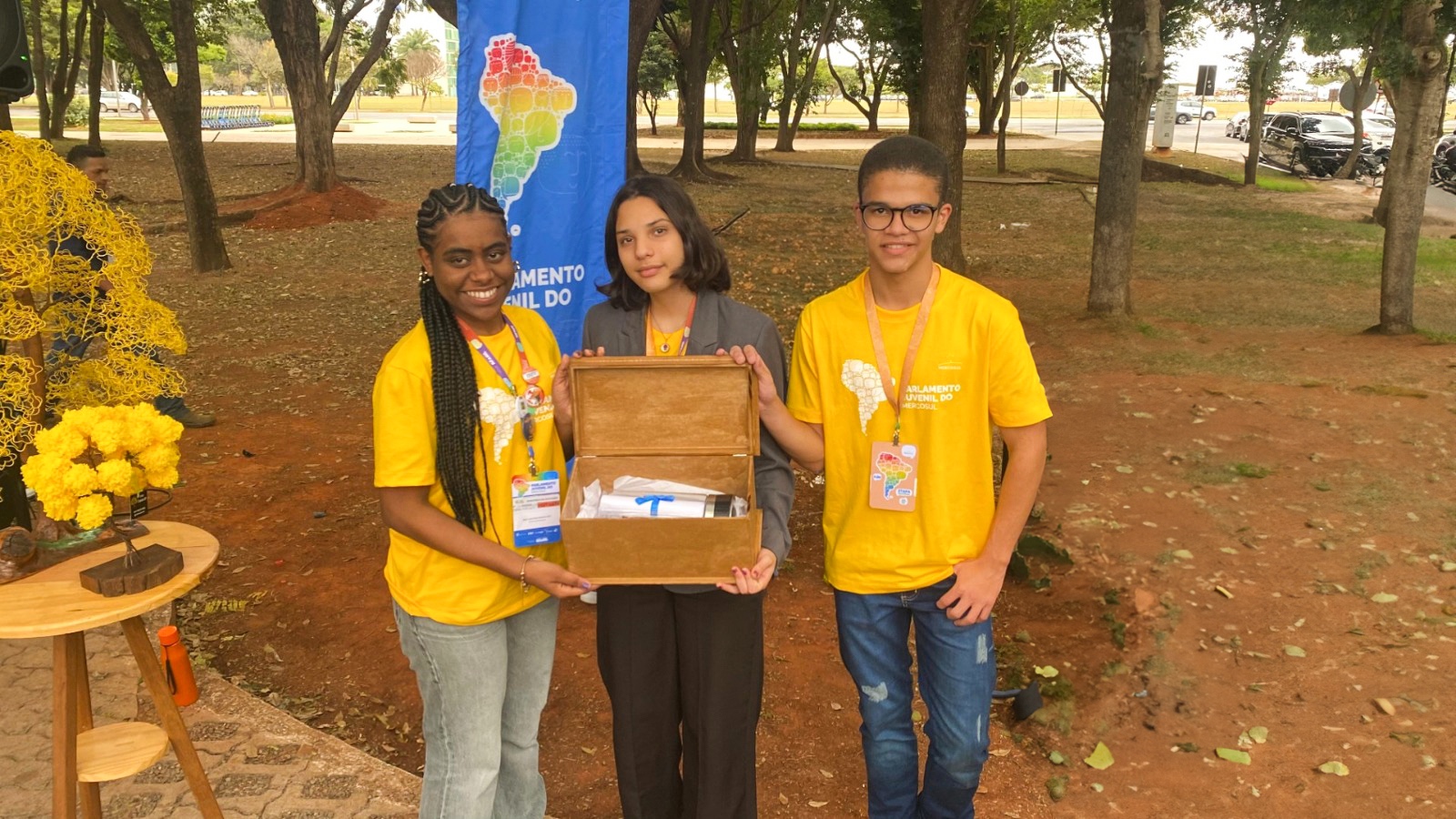 Durante a programação, Cecília e os colegas do CED 01 também participaram da elaboração de uma carta com os desejos da juventude para o futuro. O texto foi enterrado em uma cápsula do tempo no Ministério da Educação (MEC) e será aberto daqui a dez anos.