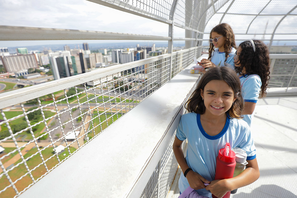 Os estudantes do 5º ano da Escola Classe 15 de Ceilândia (EC15) tiveram, nesta terça-feira (3), uma experiência diferente ao estar a 75 metros do chão, sob um dos principais cartões postais de Brasília, a Torre de TV. O passeio, realizado como parte do Projeto Brasília Monumental, visa proporcionar aos alunos da rede pública uma experiência educativa nos principais monumentos do DF, aproximando-os da vida política brasileira e facilitando a compreensão das instituições do país.