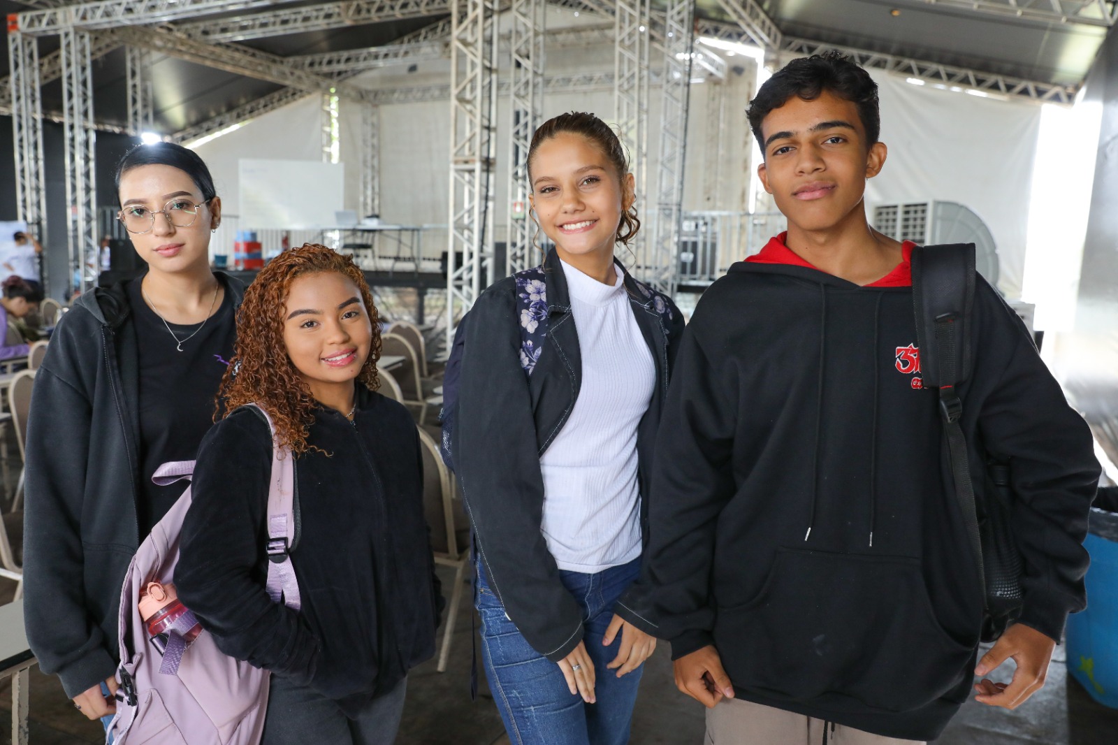 Alunos de centros de ensino médio espalhados por Ceilândia, Erica da Silva Lopes, Sarah Kesila Mendes, Jheniffer Martins e o Samuel Rosa Alves participaram do aulão preparatório para o Enem, neste domingo (20) | Foto: Paulo H. Carvalho/Agência Brasília