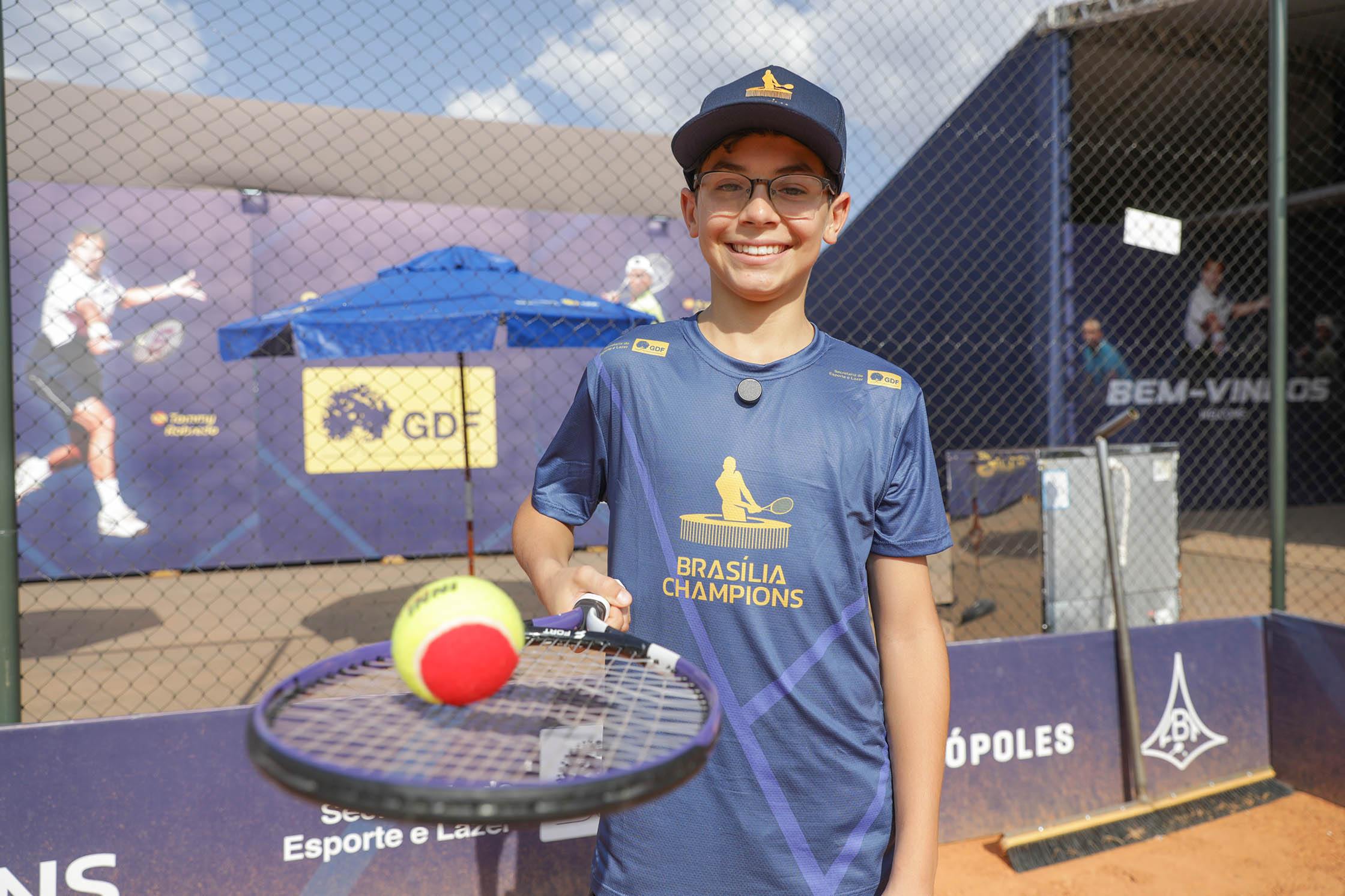 Aos 14 anos, Marcos Paulo Cardoso contou ser “muito chegado aos esportes desde mais novo”. “Sempre quis fazer tudo na escola. Handball, basquete, futebol… O que o professor pedia eu estava fazendo. E sempre vejo um esporte novo para fazer.” Nesta quinta-feira (26), o jovem encontrou o tênis. Ele foi um dos estudantes dos Centros Olímpicos e Paralímpicos (COPs) a visitarem o complexo do Brasília Champions 2024, nos arredores da Arena BRB Mané Garrincha.