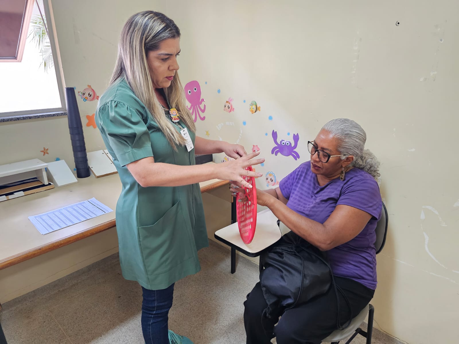 “Hoje, a importância da terapia ocupacional para essa reabilitação é o paciente ser independente, ele ser funcional. No pós-operatório o paciente, que tiver uma fratura de membro superior, ele vai ficar dependente de alguém para comer, para escovar os dentes, na hora do banho, para se limpar na hora do banheiro. Então, a partir da internação, ele já fica dependente de alguém e eu, enquanto terapeuta ocupacional, tenho que deixar esse paciente funcional, deixar ele independente para as atividades do dia a dia”, explica a terapeuta ocupacional do Ambulatório de Reabilitação de Membro Superior, Viviane França.