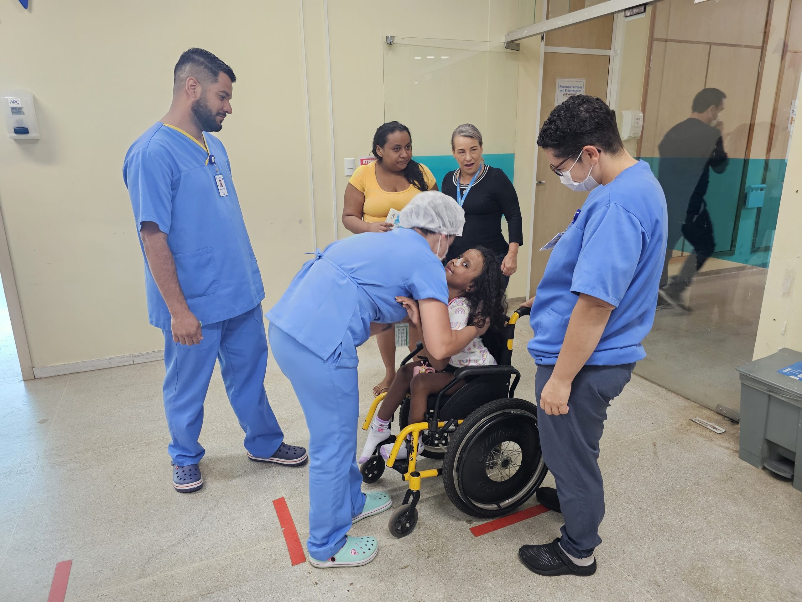 “O quadro de saúde da Ana Vyctórya está estável. Ela precisa continuar sendo acompanhada com especialistas por conta da patologia de base dela. Nossas altas são comemoradas com muita alegria e sentimento de dever cumprido, especialmente pelo tempo prolongado de permanência e as dificuldades de desospitalização da rede”, explica a chefe do Serviço da Unidade de Cuidados Prolongados Pediátricos do HRSM, Lara Vieira.