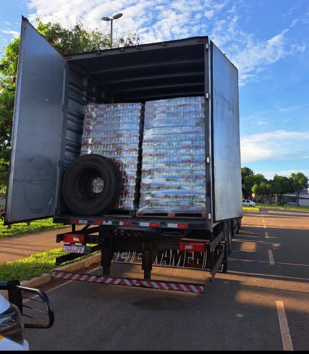 Carreta com mais de 100 mil latas de cerveja, sem documentação fiscal, foi retida na operação da Receita do DF | Foto: Divulgação/Seec
