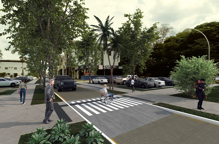 Também são propostas novas travessias elevadas para facilitar o percurso de pedestres e de ciclistas que circulam diariamente entre as quadras, além de reconfigurar a via interna entre os blocos comerciais das 700 para ser uma área sinalizada e compartilhada entre carros e pedestres, com velocidade máxima de 30 km/h, chamada de Zona 30. A ideia é tornar a circulação mais segura para todos os transeuntes e veículos.