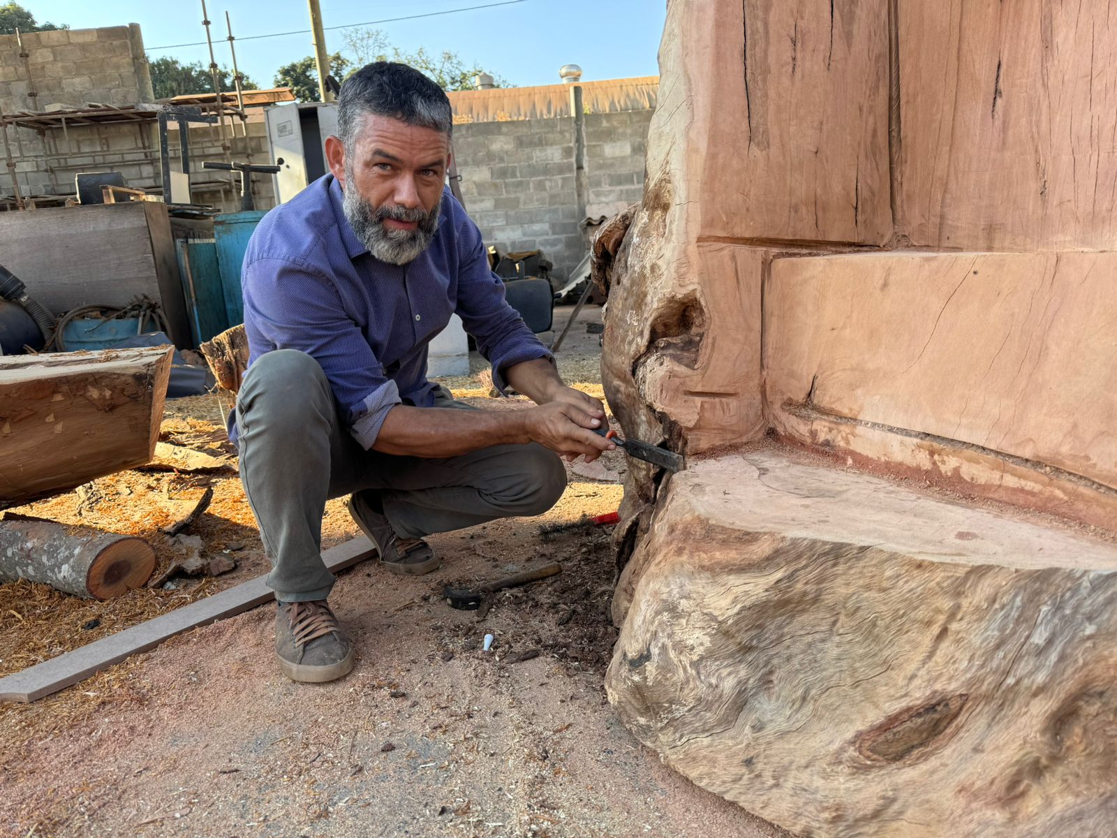 Esse é o primeiro trabalho de grande porte do artista para um festival. Ele começou a fazer peças em madeira quando recebeu uma mesa errada de um marceneiro. Ele mesmo pesquisou na internet como consertar o erro e, com as sobras, ainda produziu mais três objetos ornamentais.