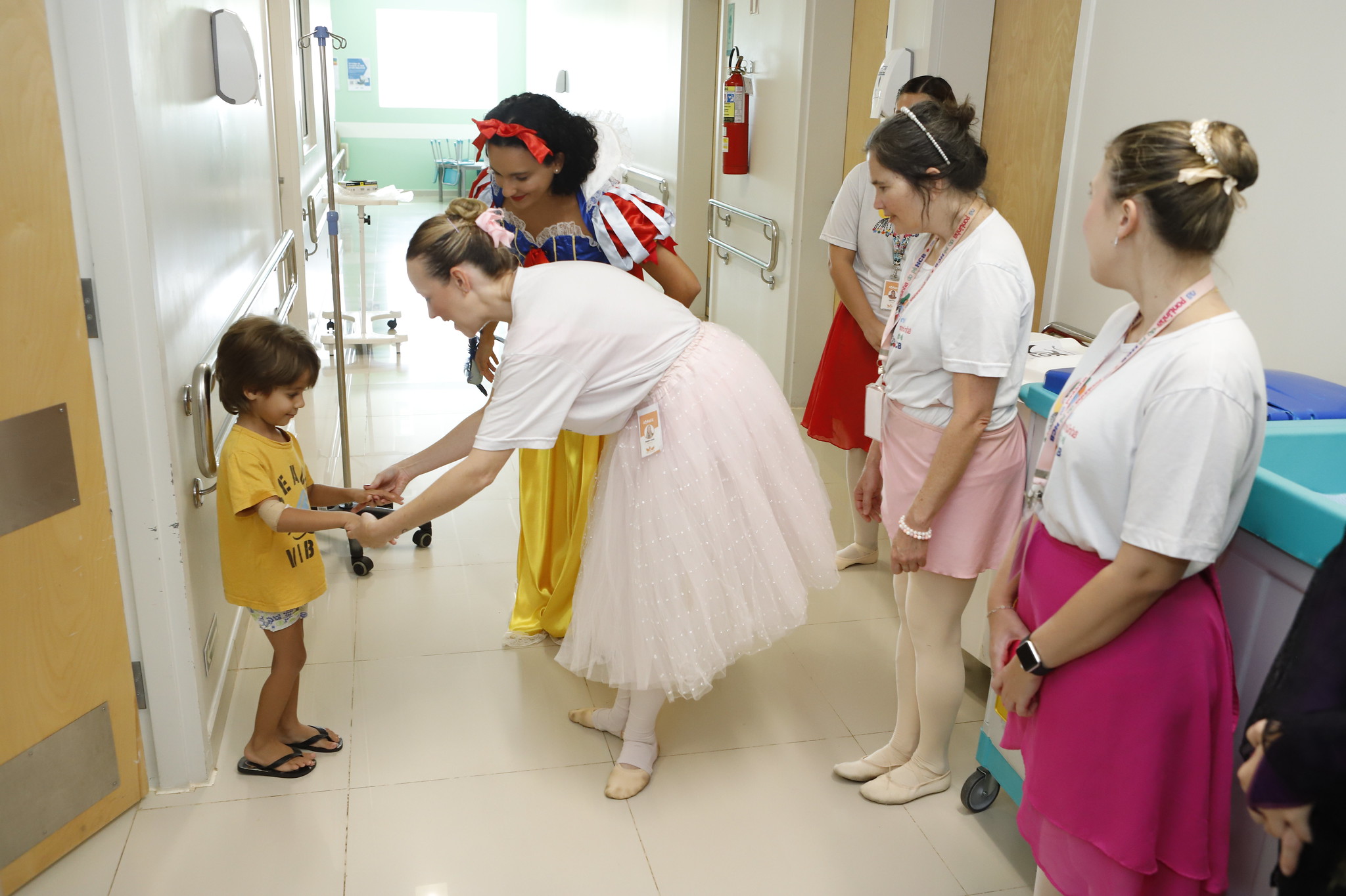 Alice Ferreira Cruz, 9 anos, esticava os braços e tentava seguir cada passo. A pequena paciente foi diagnosticada com hiperplasia adrenal congênita – uma doença que afeta as glândulas suprarrenais, responsáveis pela produção de hormônios. Sob a supervisão de princesas e vilãs bailarinas, Alice pôde experimentar a dança, dando uma pausa na internação após a cistoscopia (exame que verifica a bexiga e a uretra).