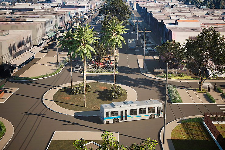 O projeto prevê a ampliação das calçadas para melhorar a circulação de pedestres e cadeirantes, especialmente em pontos de maior fluxo, como paradas de ônibus. Serão construídos 3.430 metros de passeios acessíveis, e a sinalização será reforçada com novas faixas de pedestre. Entradas de ruas sem saída serão transformadas em calçadas contínuas com plataformas elevadas.