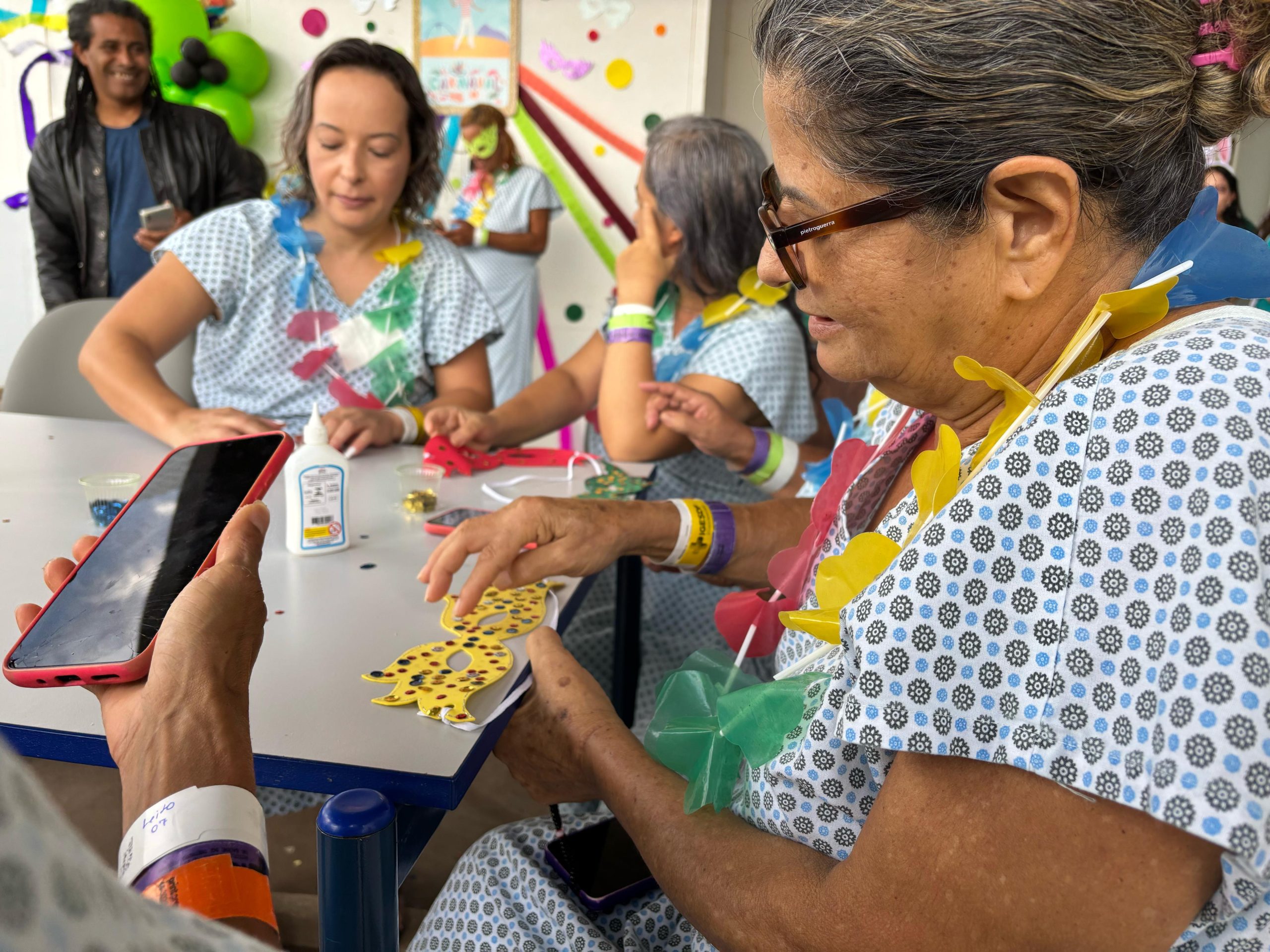 Ao som de marchinhas de Carnaval, a unidade se encheu de cores e sorrisos. Entre as atividades, uma oficina de decoração de máscaras carnavalescas e a eleição do Rei e da Rainha do Carnaval marcaram a celebração.