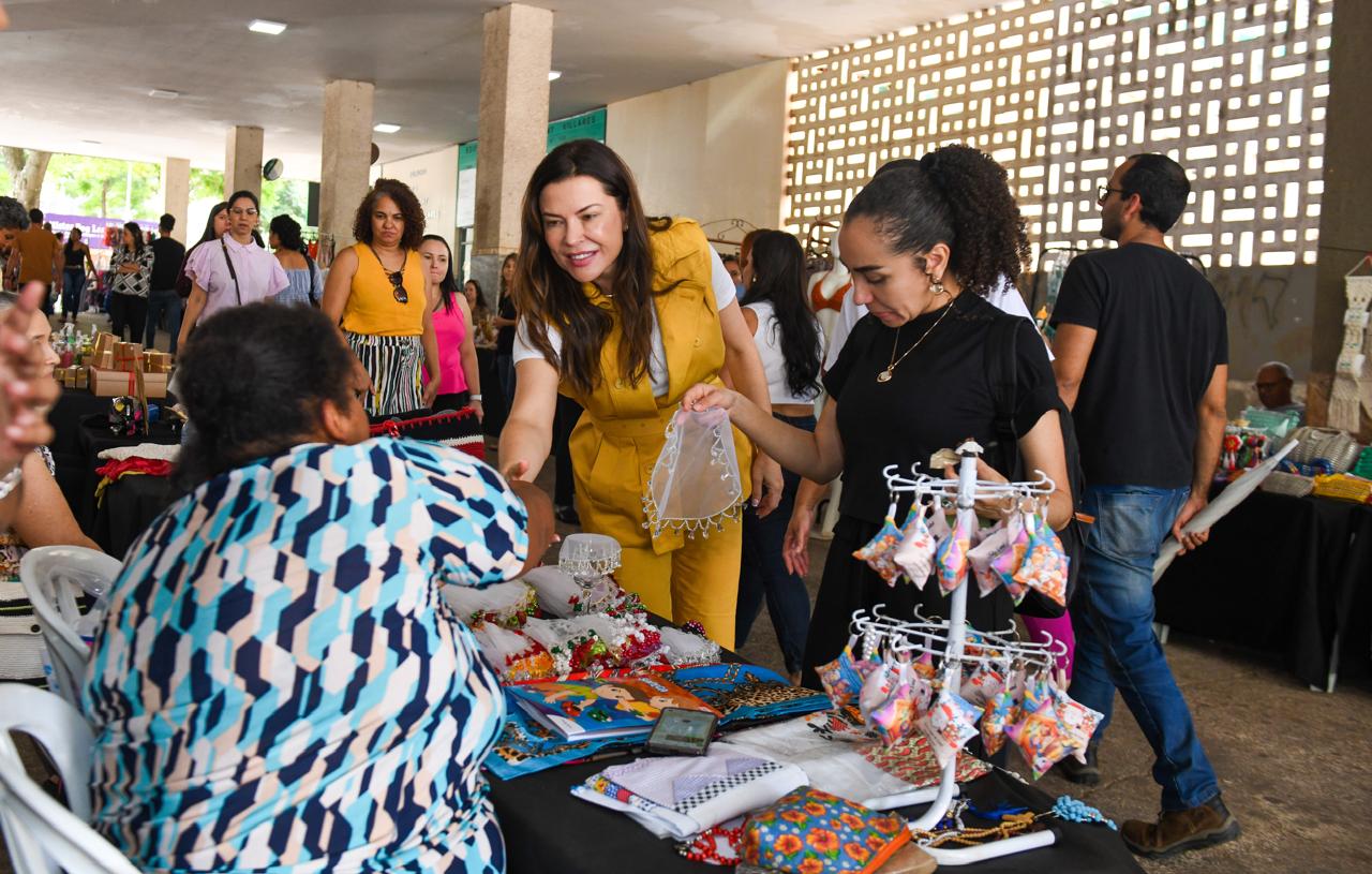 “Essas expositoras realizam um trabalho importantíssimo, que é ensinar as mulheres que hoje não estão acreditando nelas mesmas”, disse a secretária Marcela Passamani, que visitou a mostra no Setor Comercial Sul | Foto: Jhonatan Vieira/Sejus-DF