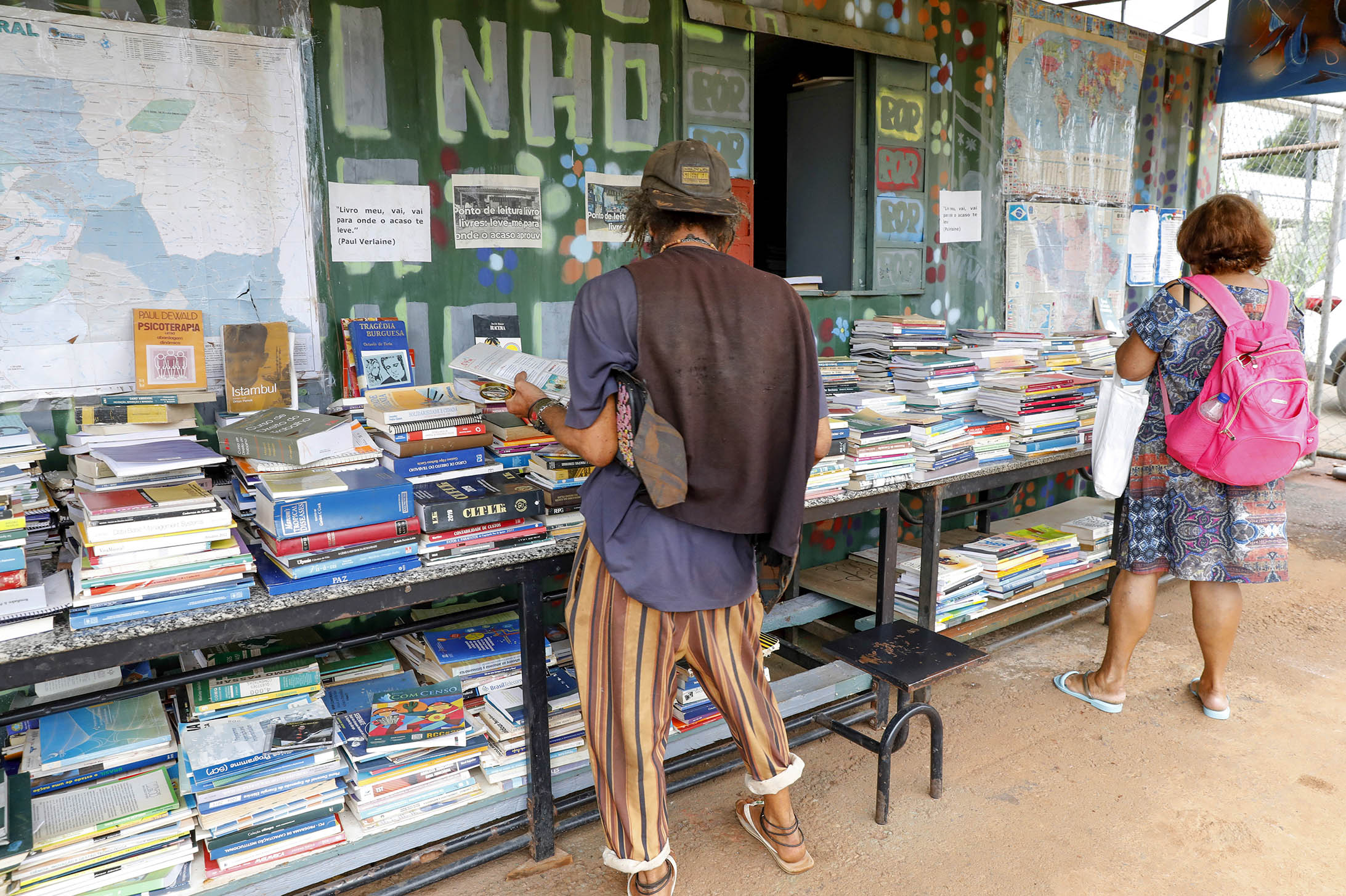 “Neste momento eu estou fazendo uma viagem no tempo, mas sem sair do lugar, por meio deste livro”, diz G.P., de 49 anos, ao folhear as páginas de Olha Para O Céu, Frederico!, de José Cândido de Carvalho. Assistido pelo Centro de Referência Especializado para População em Situação de Rua (Centro Pop), localizado na Quadra 903 da Asa Sul, ele é frequentador assíduo da biblioteca do espaço.