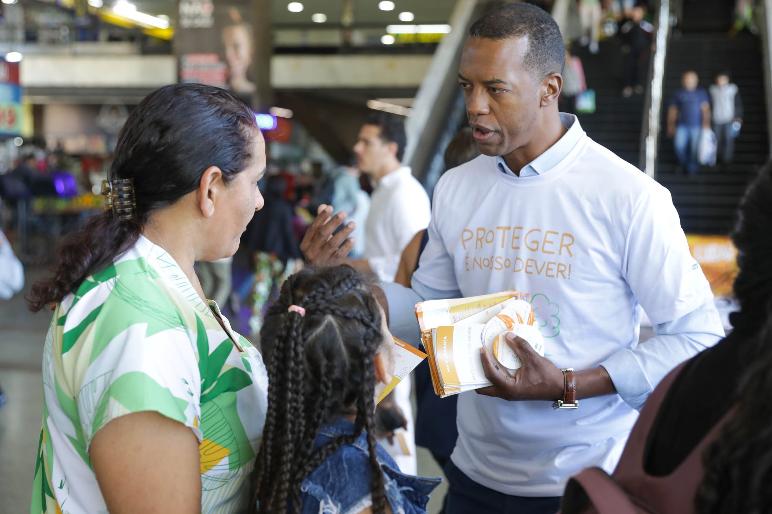 Uma blitz educativa organizada na Rodoviária do Plano Piloto abriu, nesta quarta (22), a programação prevista para o Maio Laranja | Fotos: Geovana Albuquerque/ Agência Brasília