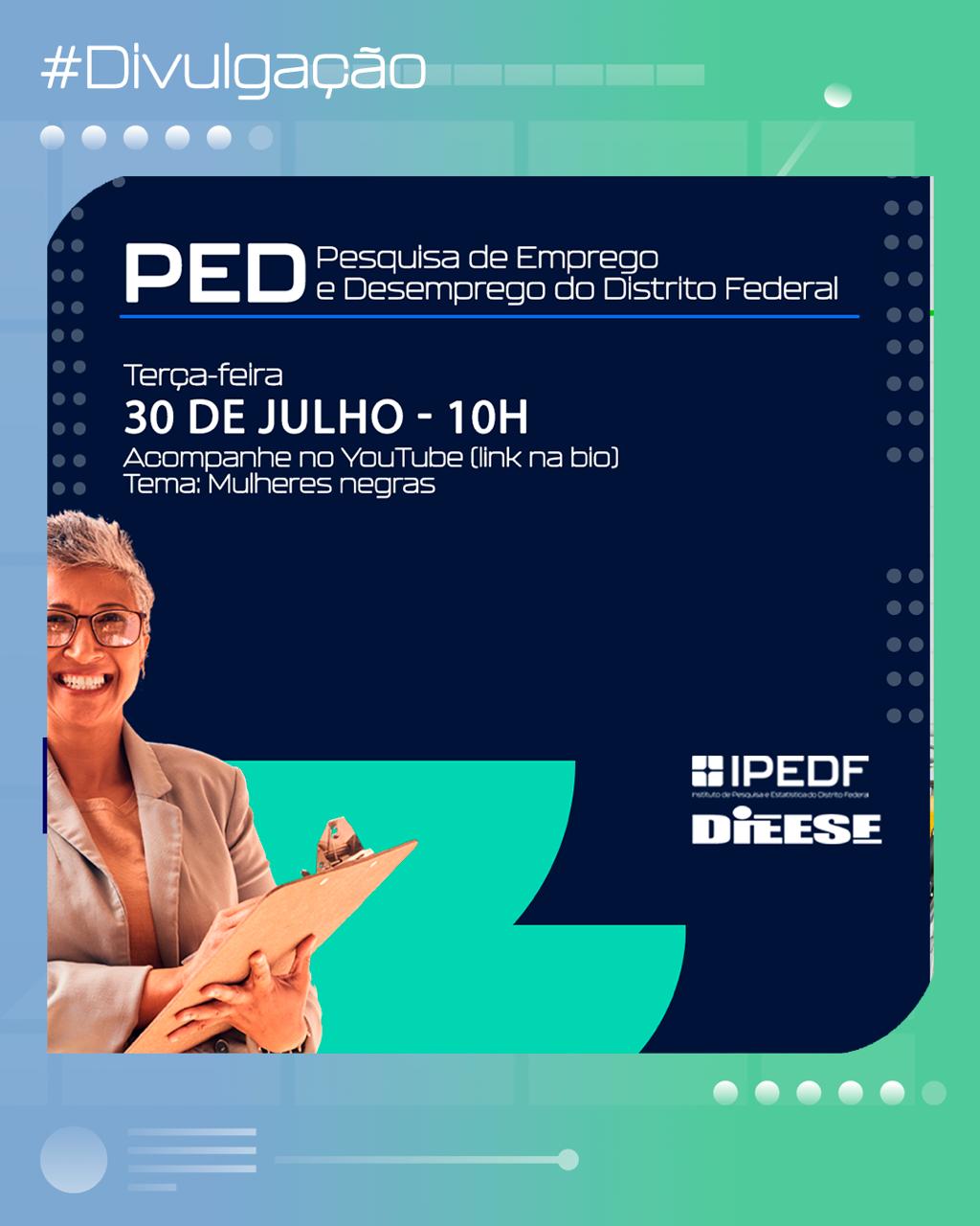 Em alusão ao Dia da Mulher Negra Latina e Caribenha, o Instituto de Pesquisa e Estatística do Distrito Federal (IPEDF) e o Departamento Intersindical de Estatística e Estudos Socioeconômicos (Dieese) apresentam, nesta terça-feira (30), às 10h, a análise anual do boletim Mulheres Negras.