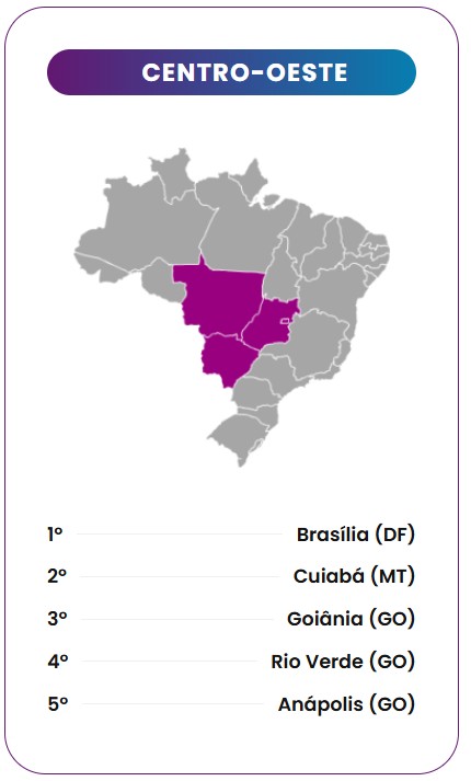 Além de Brasília, outras cidades da região também receberam o reconhecimento, como Cuiabá (MT), Goiânia (GO), Rio Verde (GO) e Anápolis (GO). Já a classificação nacional é marcada pela predominância de municípios paulistas nas primeiras posições. Barueri lidera a classificação geral, ao lado de São Caetano do Sul, Jundiaí, São Paulo e Santos, que surgem na sequência. A capital paulista está no 14º lugar entre os aglomerados urbanos mais sustentáveis do país.