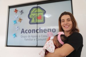 Desde 2020, ela e o marido já acolheram quatro crianças de diferentes idades e demandas bem específicas, como a pequena Marina*, que à época tinha apenas um ano e que precisava se alimentar por meio de sonda devido a um problema de saúde. Antes de chegar à família, a bebê havia passado oito meses internada. Nessa época, a criança não se sentava nem rolava.
