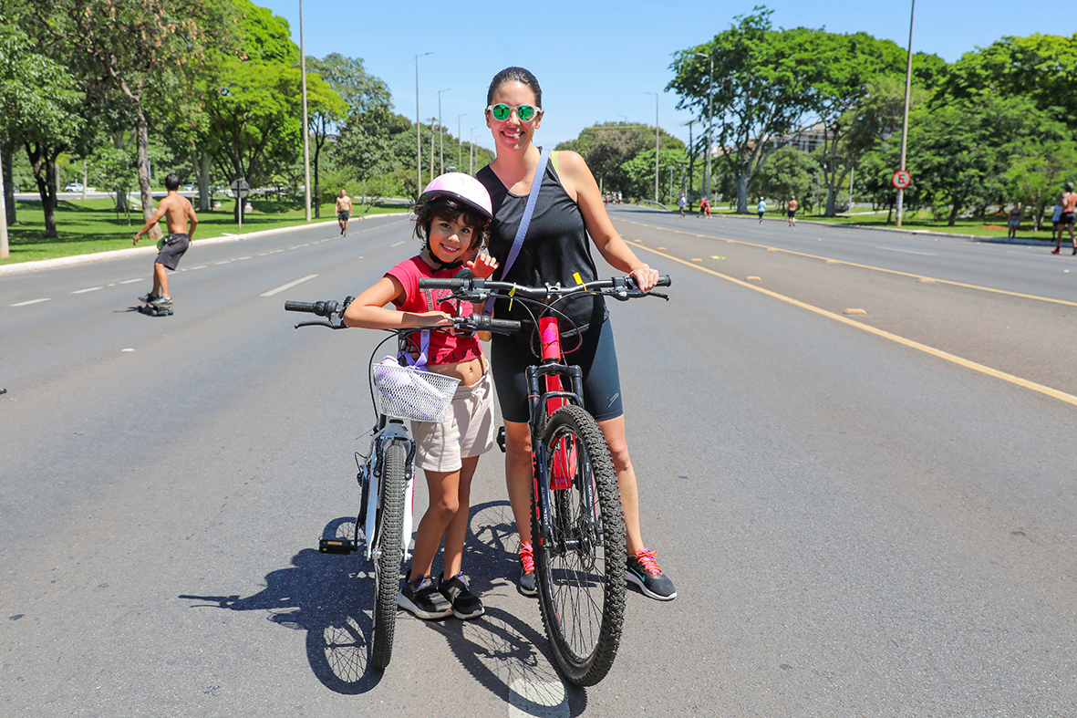 O passeio entre mãe e filha esteve garantido no feriado. Moradoras da Asa Norte, Bárbara Almeida, de 40 anos, e a filha Ana Rosa, 9, aproveitaram o dia ensolarado para pedalar, ideia da pequena. “Hoje o papai ficou em casa, então eu vim pedalar com a mamãe. Eu que dei a ideia”, contou Ana Rosa, rindo.