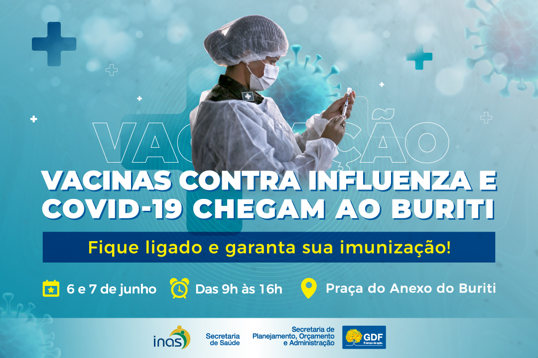 O Governo do Distrito Federal (GDF) vai trazer a imunização contra a influenza (gripe) e a covid-19 até os servidores. Antes do feriado, nos próximos dias 6 e 7, das 9h às 16h, na Praça do Anexo do Buriti, haverá vacinação contra as duas doenças. A iniciativa é fruto da parceria entre Subsecretaria de Segurança e Saúde no Trabalho (SubSaúde) da Secretaria de Planejamento, Orçamento e Administração (Seplad), Secretaria de Saúde (SES) e Instituto de Assistência à Saúde dos Servidores do Distrito Federal (Inas-DF).
