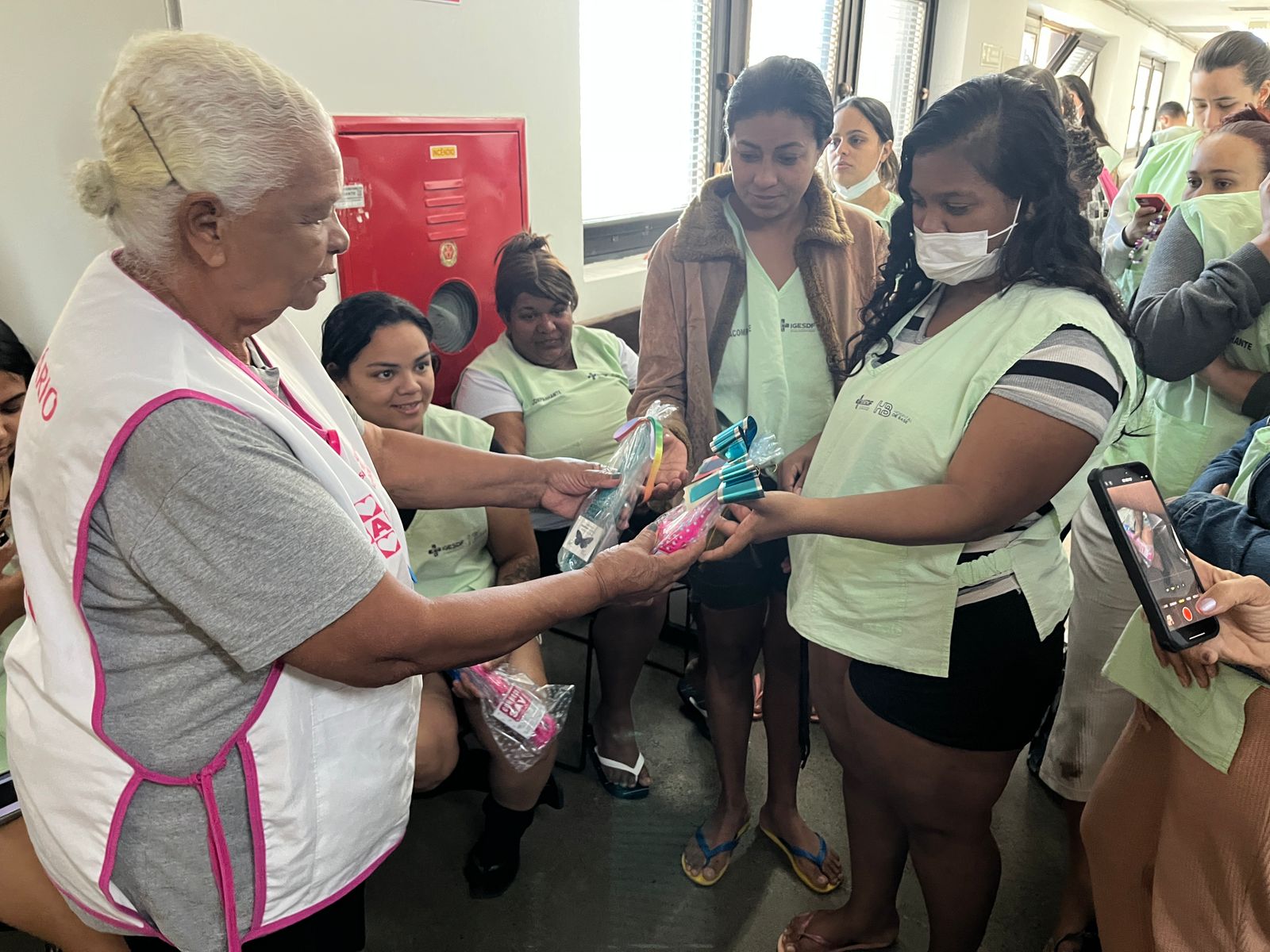 Cada mãe recebeu um porta-sabonete de crochê com sabonete artesanal e um kit com lixa de unha, prendedor de cabelo e batom de cacau. Também foram sorteados brindes de beleza entre as mães das três UTIs pediátricas da unidade.