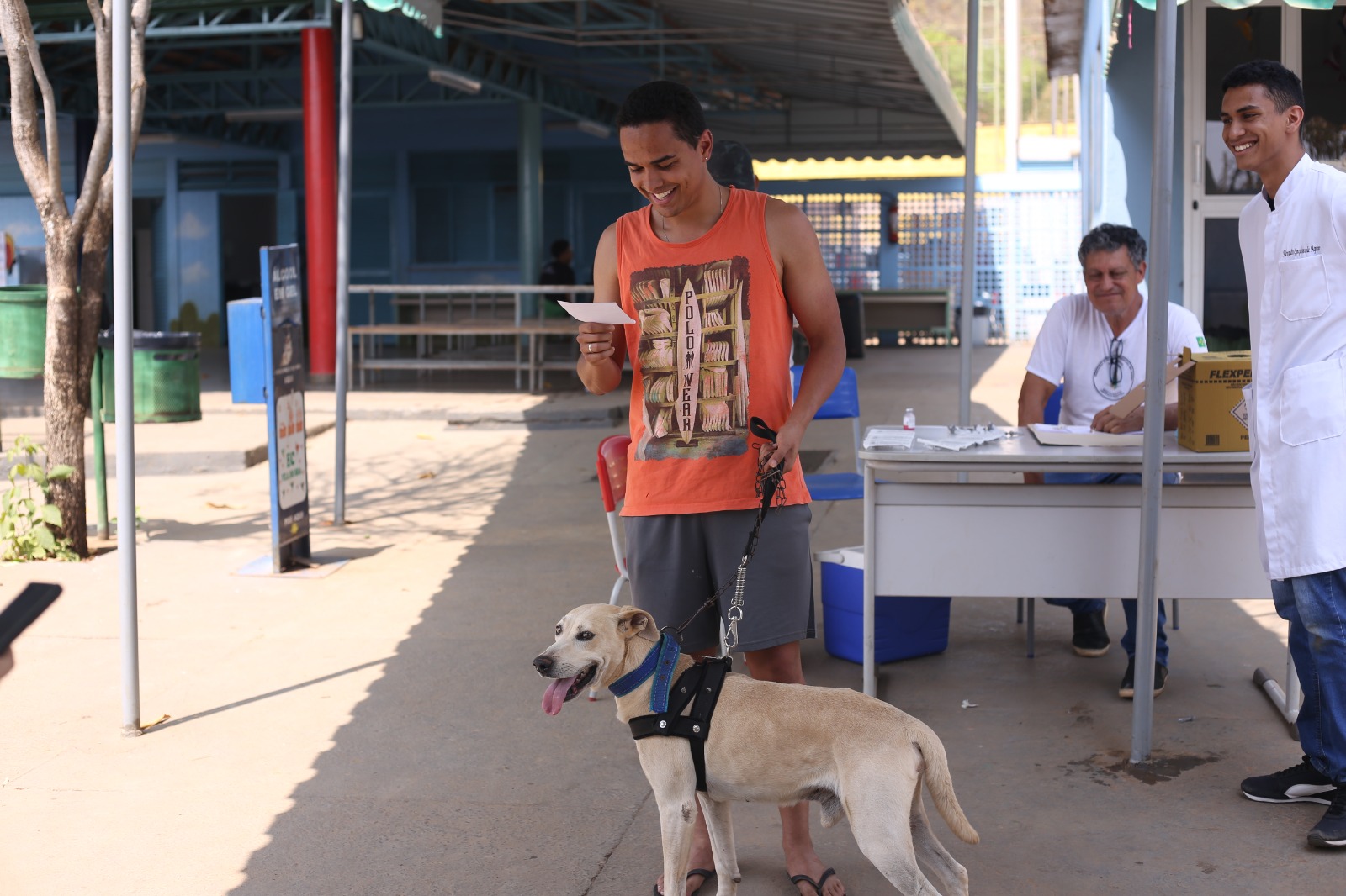 O estudante Alexandre Gonçalves levou seu cão Ted para ser vacinado em São Sebastião: “Ele é nosso mascote, não dá pra descuidar” | Fotos: Divulgação/ Agência Saúde-DF