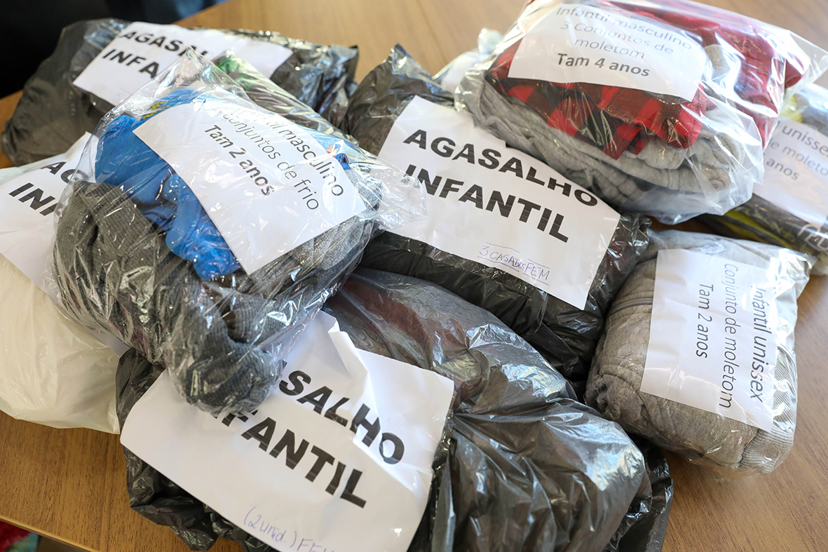 Nathália Brito, integrante da equipe da campanha, reforça a recomendação de que as peças sejam entregues em sacos plásticos transparentes, com identificação de tamanho e público-alvo. “Quando as roupas não vêm separadas, nós fazemos a triagem, mas é preferível que as pessoas façam isso em casa”, pontua. “Toda a equipe da chefia participa ativamente em tudo, desde a separação entre masculino, feminino e infantil, e daquelas que não estão boas para uso, com furos, rasgos e com o tecido gasto, que são descartadas.”