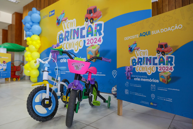 Idealizada pela primeira-dama do Distrito Federal, Mayara Noronha Rocha, e coordenada pela Chefia-Executiva de Políticas Sociais, a campanha Vem Brincar Comigo está na quinta edição e faz parte do calendário oficial brasiliense. A iniciativa consiste na arrecadação de brinquedos junto à população e à sociedade civil para serem distribuídos em eventos com apoio do GDF, além da promoção de experiências inesquecíveis aos pequenos cidadãos, como espetáculos teatrais e parques de diversões.