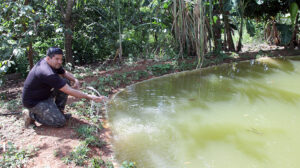 Delman Ferreira Oliveira mostra o reservatório de água do canal de irrigação | Fotos: Divulgação/Emater