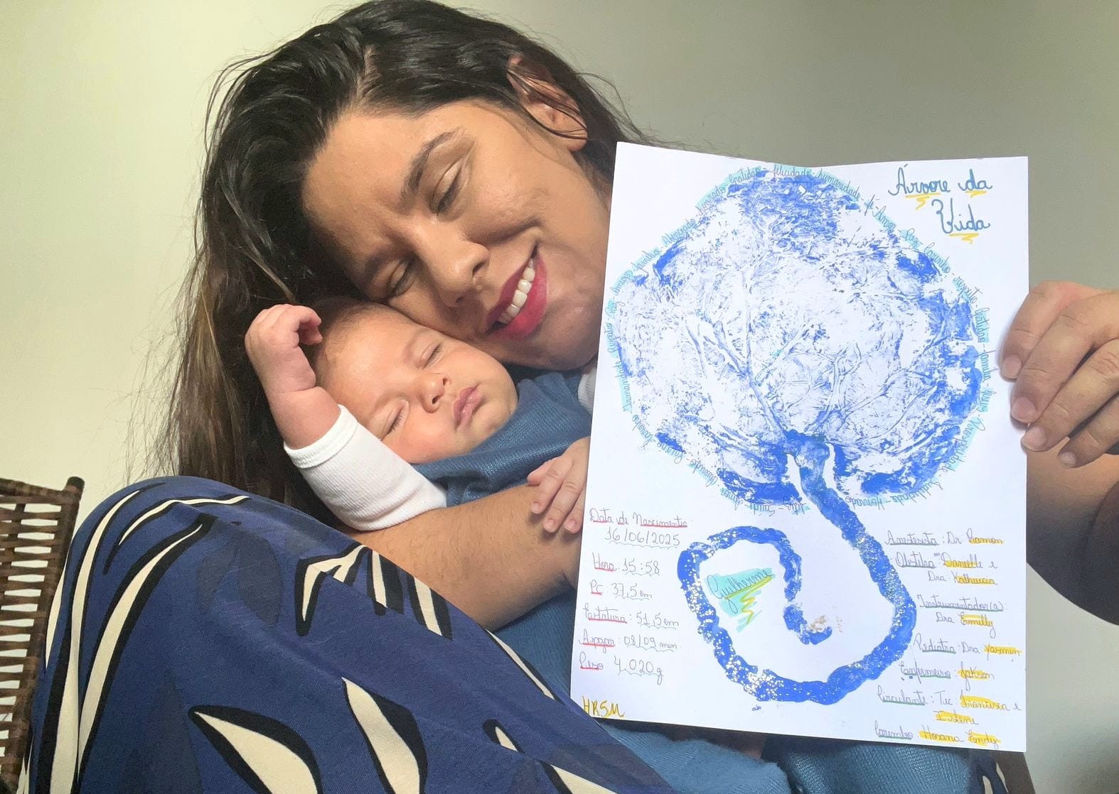 A iniciativa é conduzida por enfermeiros e técnicos de enfermagem do setor. Para a chefe do serviço de enfermagem do centro, Ariodene Carvalho, o trabalho vai muito além da estética. “A placenta é o órgão que nutre, protege e conecta mãe e bebê durante toda a gestação. Quando realizamos o carimbo, queremos representar essa ligação única e poderosa. A imagem se assemelha a uma árvore, com raízes que lembram o crescimento e o desenvolvimento do bebê no ventre materno”, explica.