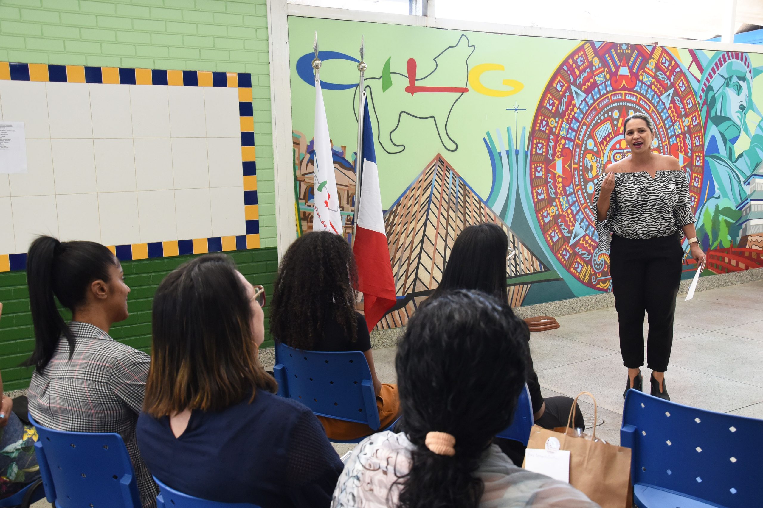 A diretora do CIL Guará, Taiana Santana, explica que o concurso traz “visibilidade para o ensino da língua francesa na rede pública” | Foto: Mary Leal, Ascom/SEEDF