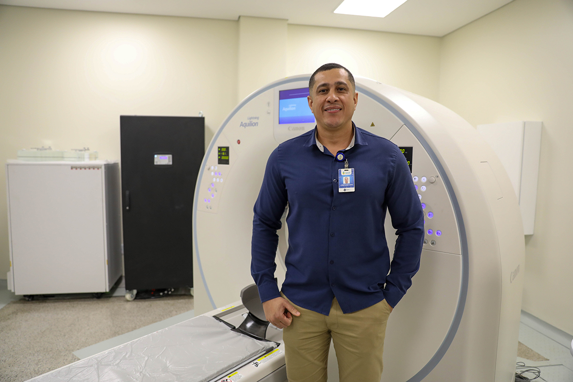 Cristiano Dias, chefe da Radiologia do HRSM, comemora: “Agora vamos conseguir realizar exames cardiológicos, de abdômen, coronárias e diversos outros com muito mais qualidade”