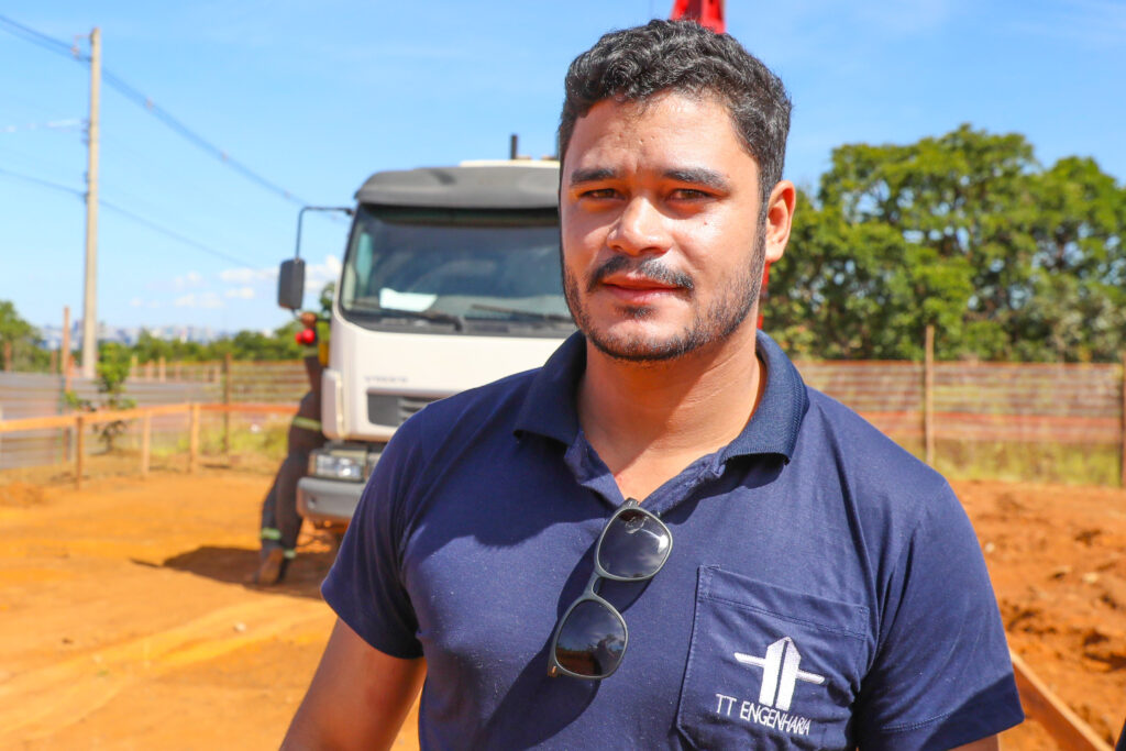 O engenheiro civil Felipe Gomes explica que o canteiro de obras está na fase final de montagem: “É uma etapa importante por se tratar do local onde serão armazenados todos os materiais e equipamentos. Além disso, o canteiro acomoda toda a infraestrutura que atenderá os operários, como refeitório e banheiro”