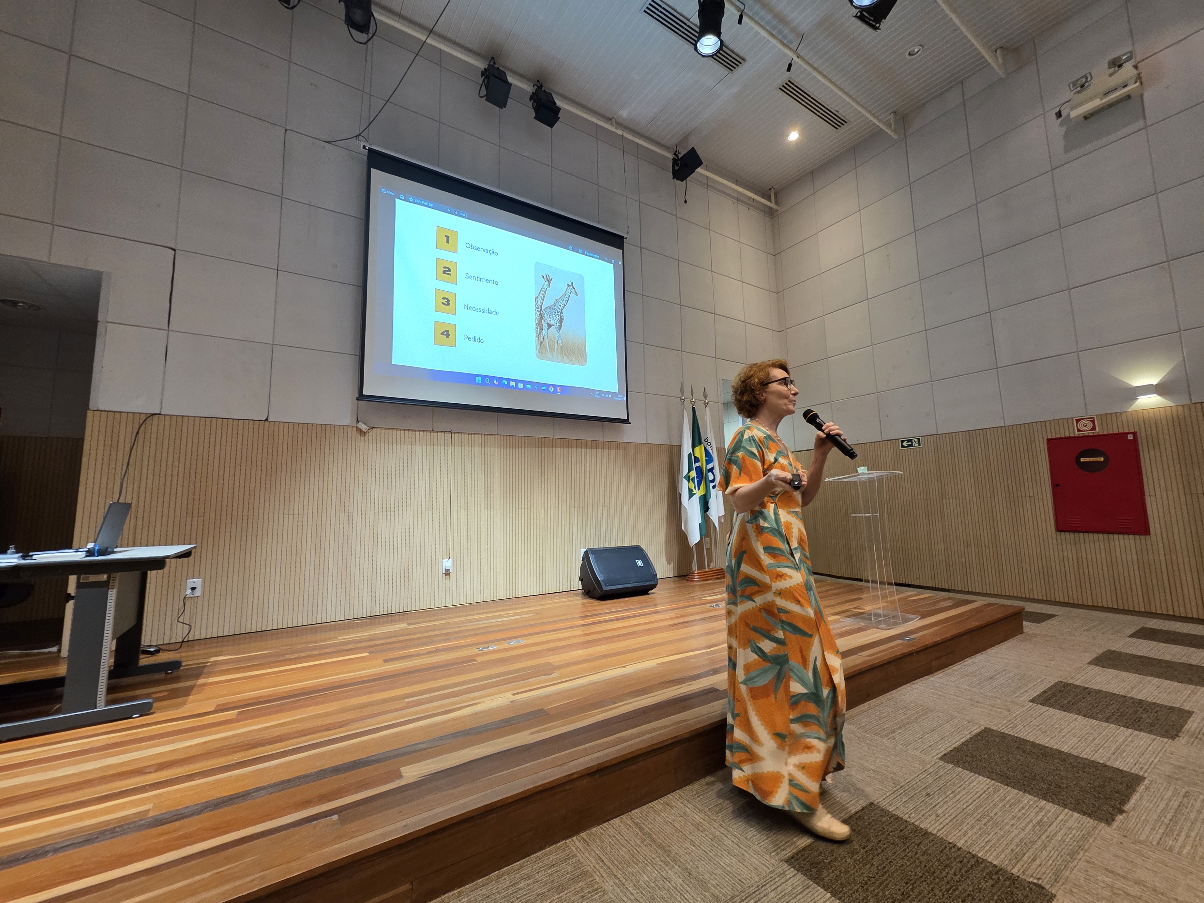 As atividades visam fomentar um ambiente organizacional mais acolhedor e produtivo, focado na qualidade das relações interpessoais e na inovação dentro do serviço público. A especialista apresentou conceitos e práticas da CNV, por meio de abordagens que valorizam a escuta ativa, a empatia e a construção de relações baseadas no respeito mútuo.