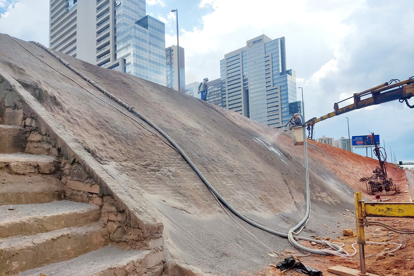 Os taludes são superfícies localizadas nas encostas às margens de rodovias e servem para evitar deslizamentos ou colapsos das paredes que revestem a lateral das pistas. A concretagem ajuda a dar mais estabilidade às estruturas, dirimindo os riscos do revestimento se desprender e invadir a pista.