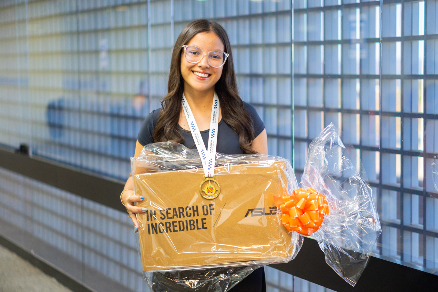 Ludmila Braziliano, primeira colocada na categoria poema, foi premiada com um notebook doado pelo representante de Taiwan no Brasi. Aluna do CED 07 de Ceilândia, a estudante destaca o poder da empatia e do amor e afirma que “não há fronteiras, cor ou condição, que impeça a força da compaixão” | Foto: André Amendoeira/Ascom SEEDF