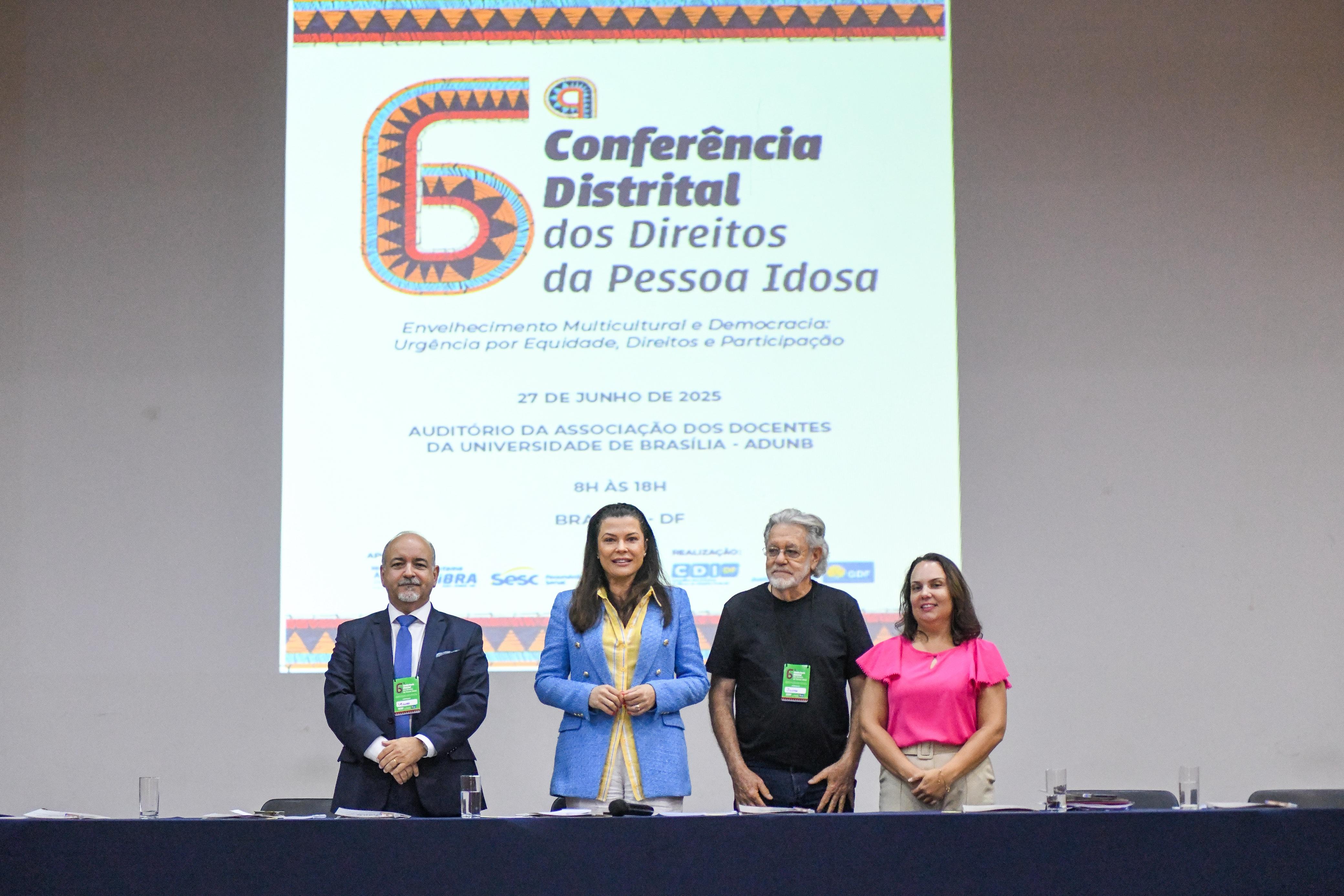 Mais de 250 pessoas participaram nesta sexta-feira (27) da 6ª Conferência Distrital dos Direitos da Pessoa Idosa, realizada no auditório da Associação dos Docentes da Universidade de Brasília (ADUnB). Promovido pelo Conselho dos Direitos da Pessoa Idosa do Distrito Federal (CDI-DF), vinculado à Secretaria de Justiça e Cidadania (Sejus-DF), o evento teve como objetivo discutir os principais desafios enfrentados no atendimento à população idosa e construir, de forma coletiva, propostas concretas para a garantia de seus direitos.