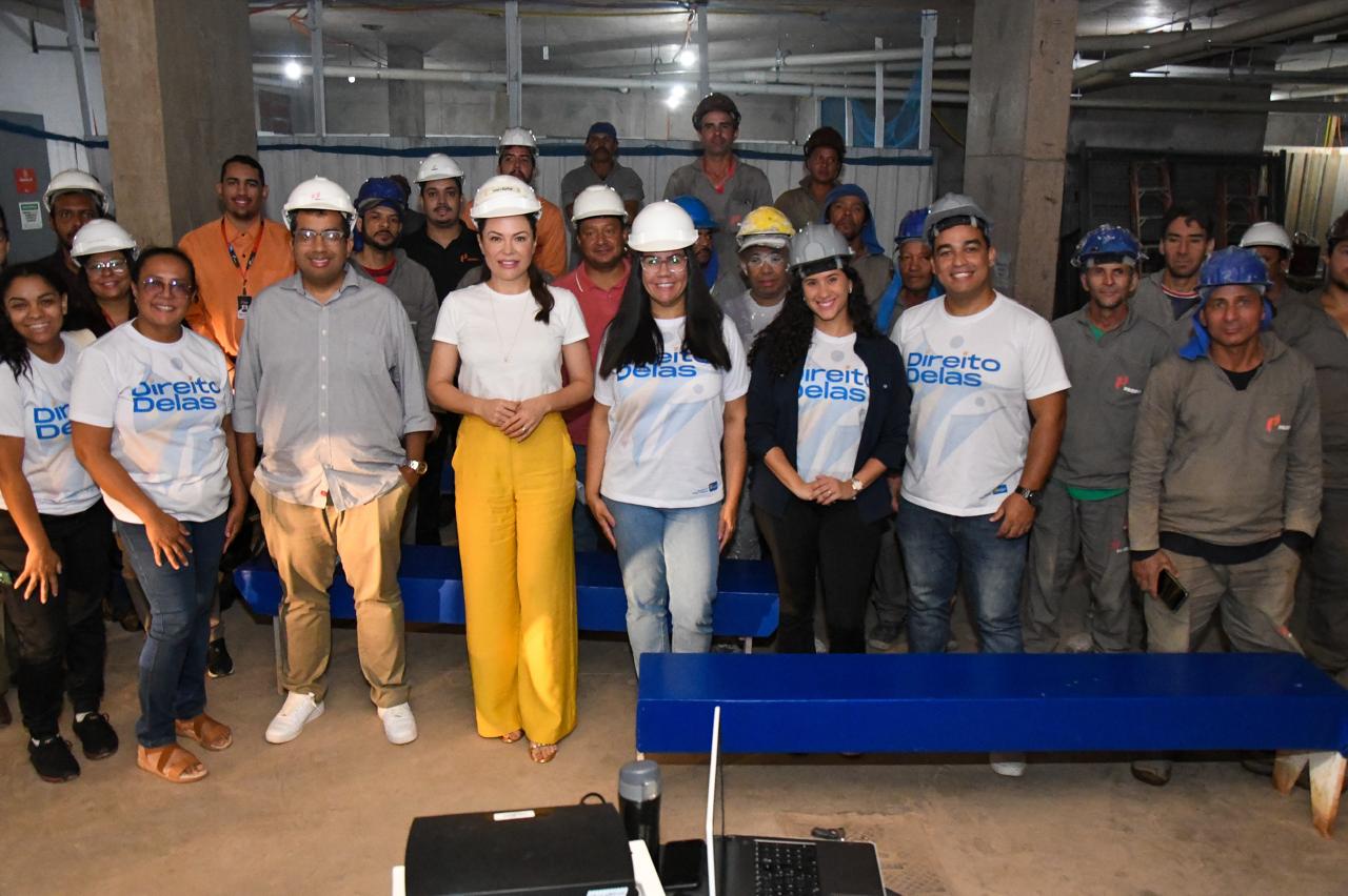 “De maneira lúdica, os trabalhadores da construção civil são sensibilizados quanto à importância de todos lutarem contra a violência. Esse diálogo ajuda a romper com a violência a que muitos podem ter sido submetidos, em algum momento da vida, e a evitar que seja reproduzido por eles contra as mulheres”, explica a secretária de Justiça e Cidadania, Marcela Passamani | Fotos: Jhonatan Vieira/Ascom Sejus