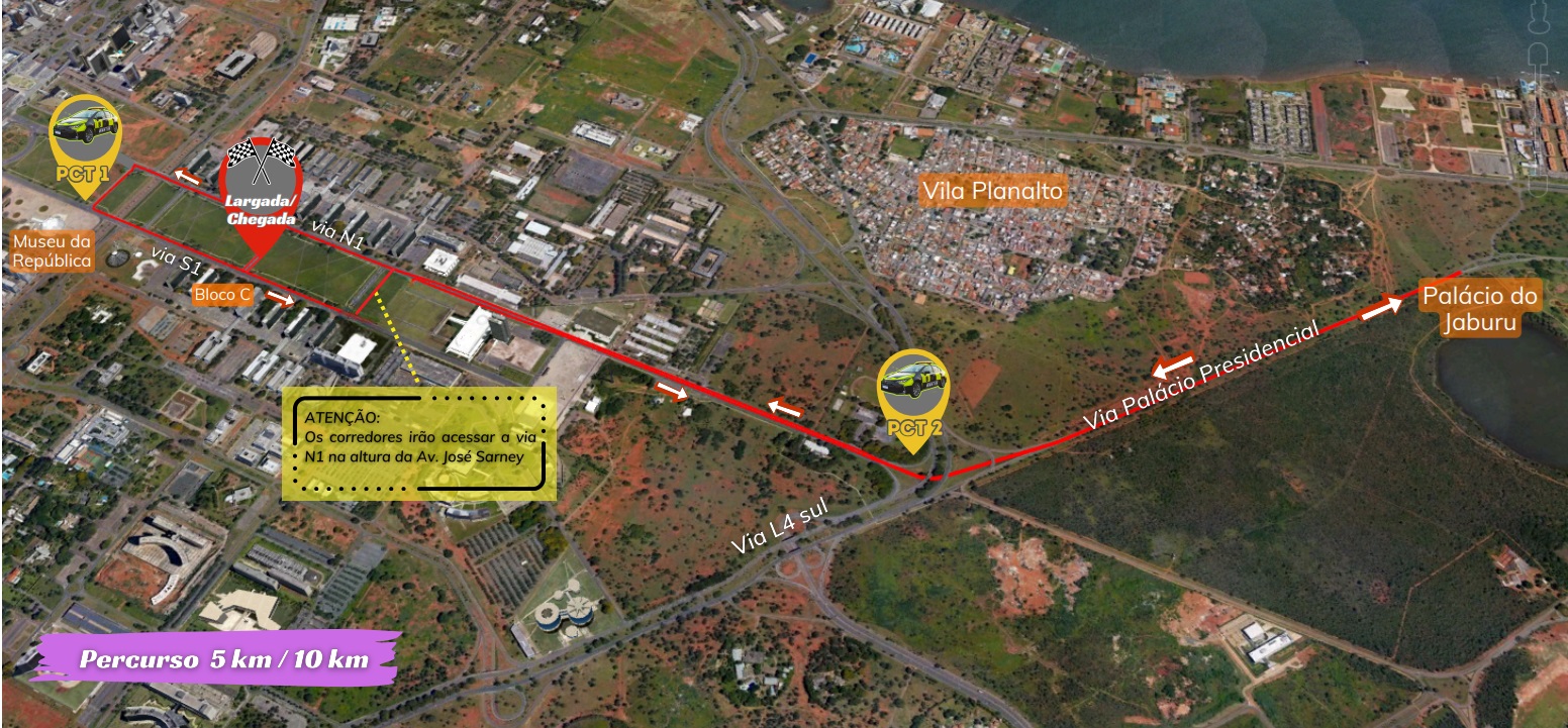 Na via N1, o bloqueio ocorrerá desde o quartel do Corpo de Bombeiros Militar (CBMDF) até a altura da L2 Norte – a faixa mais à direita, a partir do Ministério da Justiça, será destinada à saída de veículos oriundos dos ministérios, enquanto as demais faixas serão utilizadas pelos participantes do evento. Os acessos à N1, pela via Palácio Presidencial e pela L4 Norte, ficarão fechados. As equipes do Detran-DF também farão a interdição de duas faixas na via Palácio Presidencial até o Palácio do Jaburu.