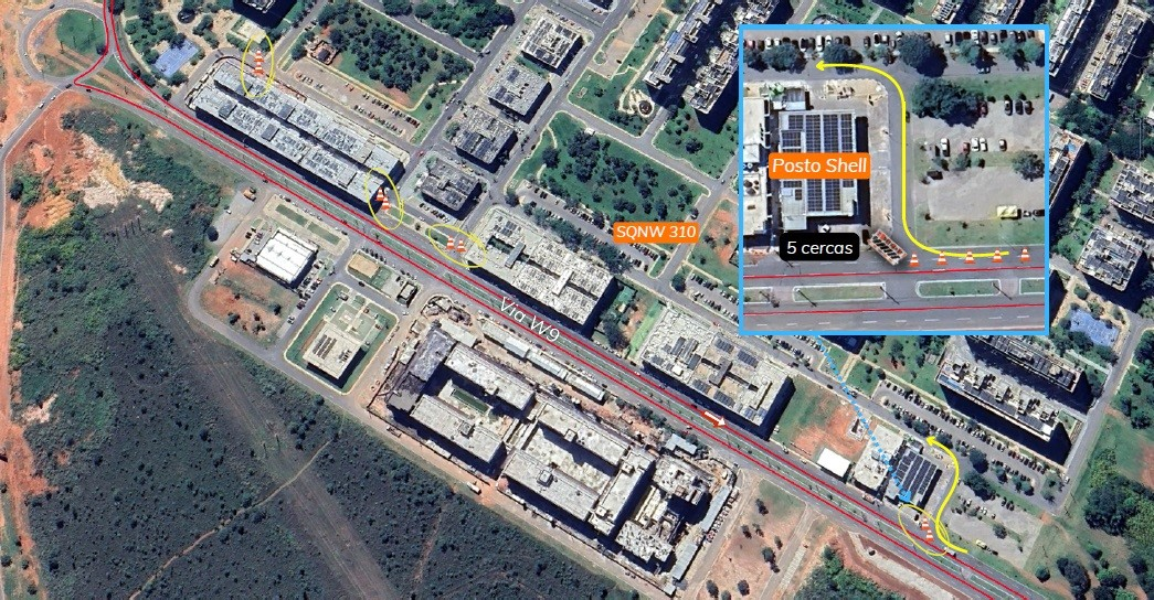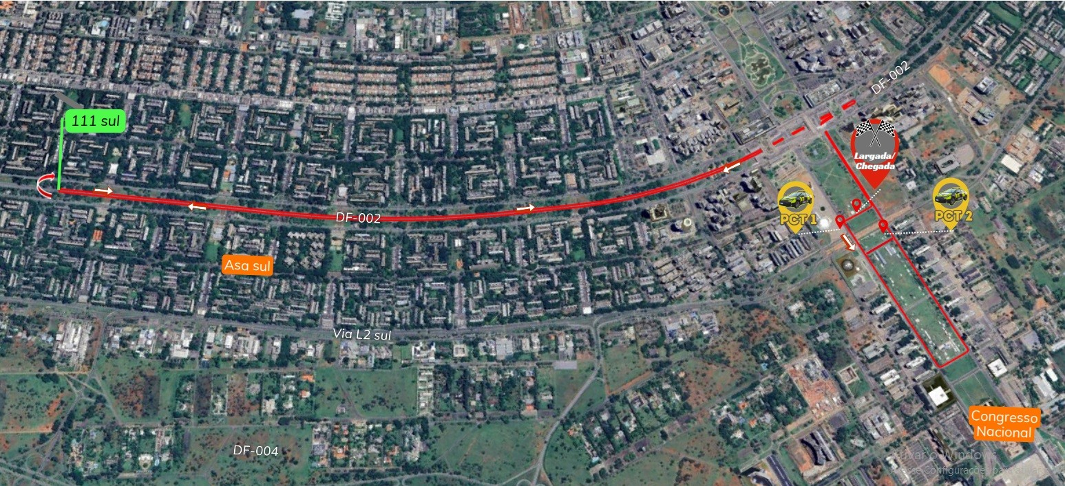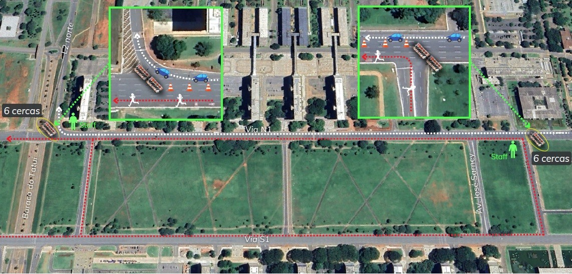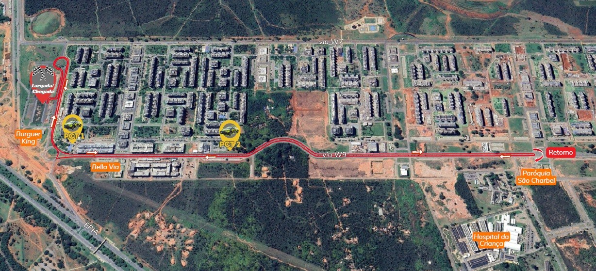 Os corredores seguirão pela via de ligação W7/W9 e depois pela W9, até a altura da SQNW 304, retornando pela mesma via até a chegada. Os agentes de trânsito farão uma intervenção pontual na rotatória de acesso à via W9, não permitindo o acesso à W7, mas possibilitando o acesso de veículos à W9 e ao STN. Na W9, na altura do posto de combustível, o trânsito será desviado para a SQNW 310. O acesso à quadra SQNW 111 pela via W7 será fechado, sendo permitido o acesso à quadra residencial pela via comercial CLNW 10/11.