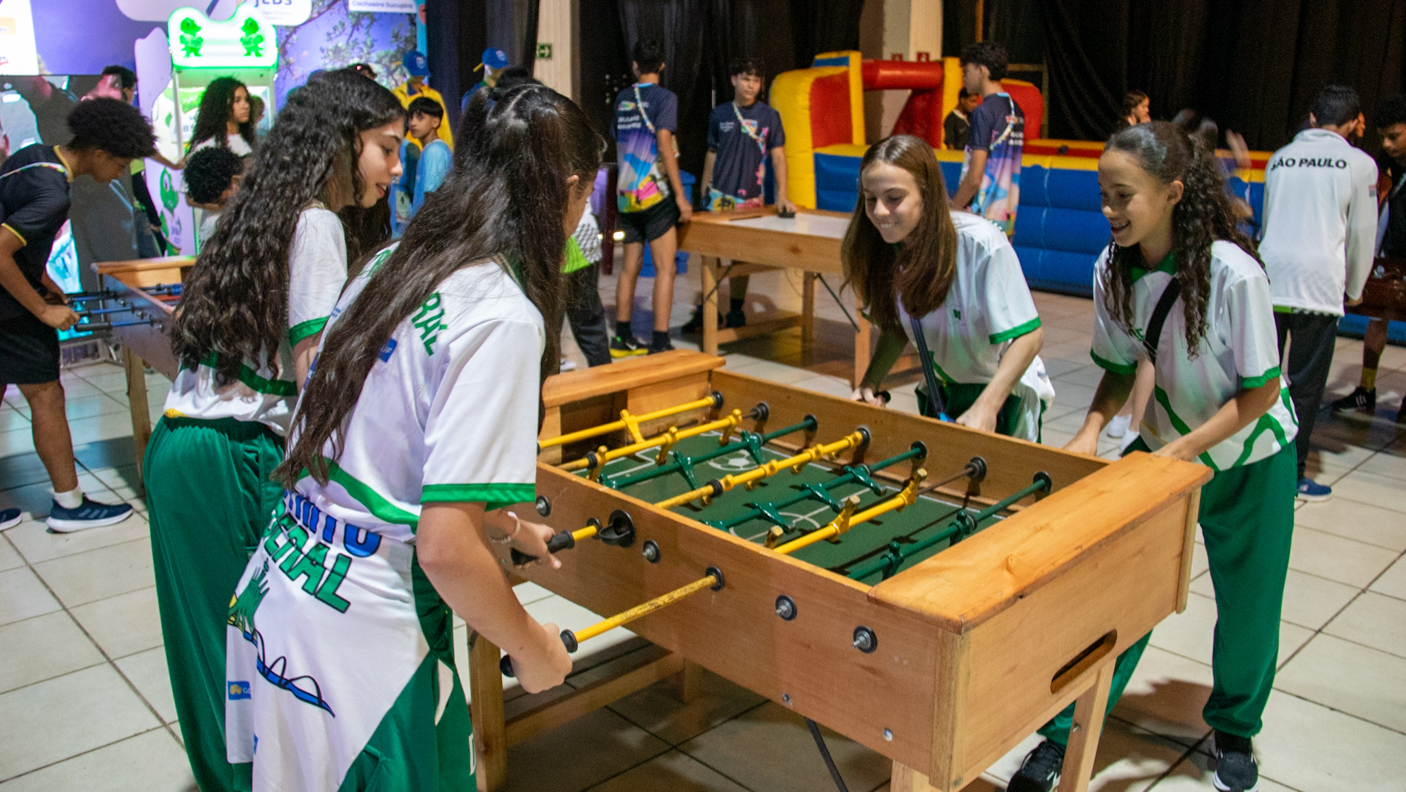 Com apresentações musicais e atividades interativas, o ambiente foi preparado para oferecer momentos de descontração e acolhimento. No local, os alunos podem jogar totó e pingue-pongue, interagir com atrações no palco e deixar mensagens em um grande mural coletivo, fortalecendo laços e o espírito esportivo que marcam os jogos.