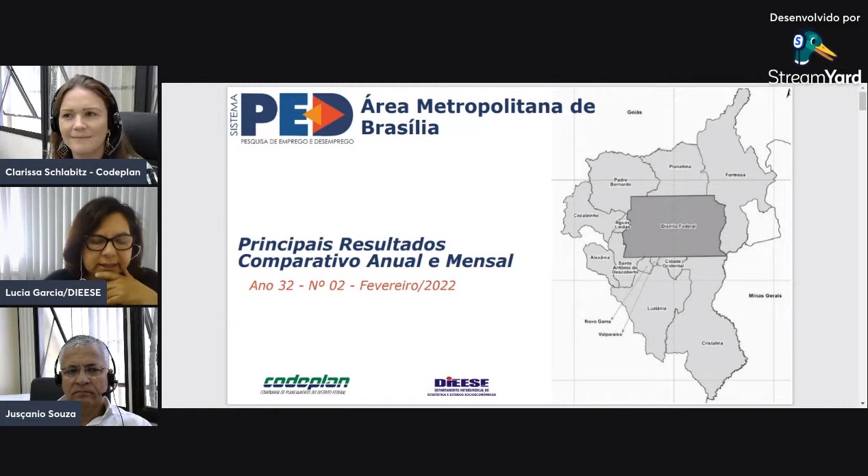 A informação consta da Pesquisa de Emprego e Desemprego (PED) da Companhia de Planejamento do Distrito Federal (Codeplan), realizada em parceria com o Departamento Intersindical de Estatística e Estudos Socioeconômicos (Dieese), divulgada nesta terça-feira (29), em transmissão pelo canal da companhia no YouTube. O levantamento é mensal e refere-se ao mês de fevereiro de 2022.