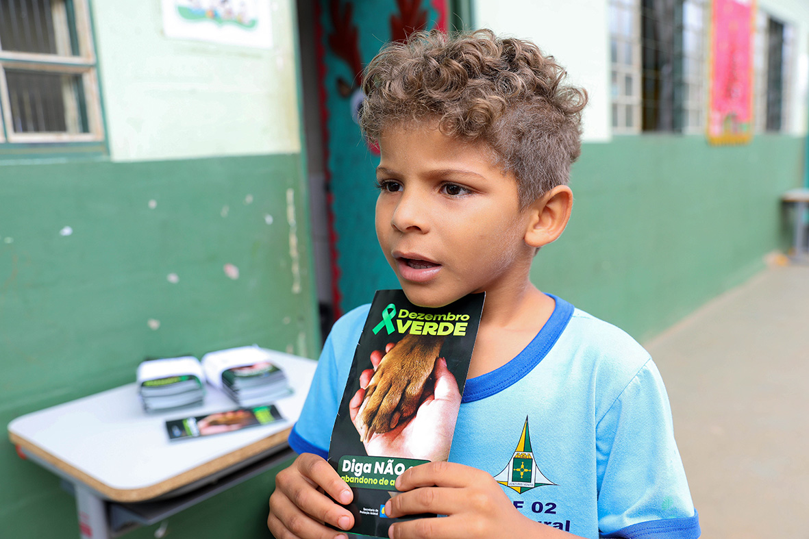 Com apenas 6 anos, Laila Beatriz Santana já sabe e replica: “Temos que cuidar dos bichinhos, porque eles são importantes. Animal não é brinquedo, e abandonar é uma coisa muito ruim”. A pequena estuda no Centro de Ensino Fundamental 02 da Estrutural, que, perto da chegada de dezembro, recebeu — assim como todas as escolas da rede pública de ensino do Distrito Federal — a campanha Dezembro Verde, promovida pela Secretaria Extraordinária de Proteção Animal (Sepan-DF) contra os maus-tratos e o abandono de animais.
