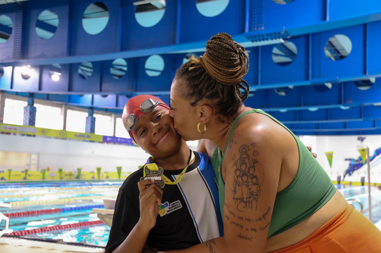 A equipe de natação brilhou mais uma vez, garantindo ouro, prata e bronze na competição, com dez medalhas nas provas de nado costas e quatro no estilo nado peito. Um dos momentos mais emocionantes foi protagonizado por Adryan Eduardo, 12, aluno do Centro de Ensino Fundamental (CEF) São Miguel Arcanjo de São Sebastião.