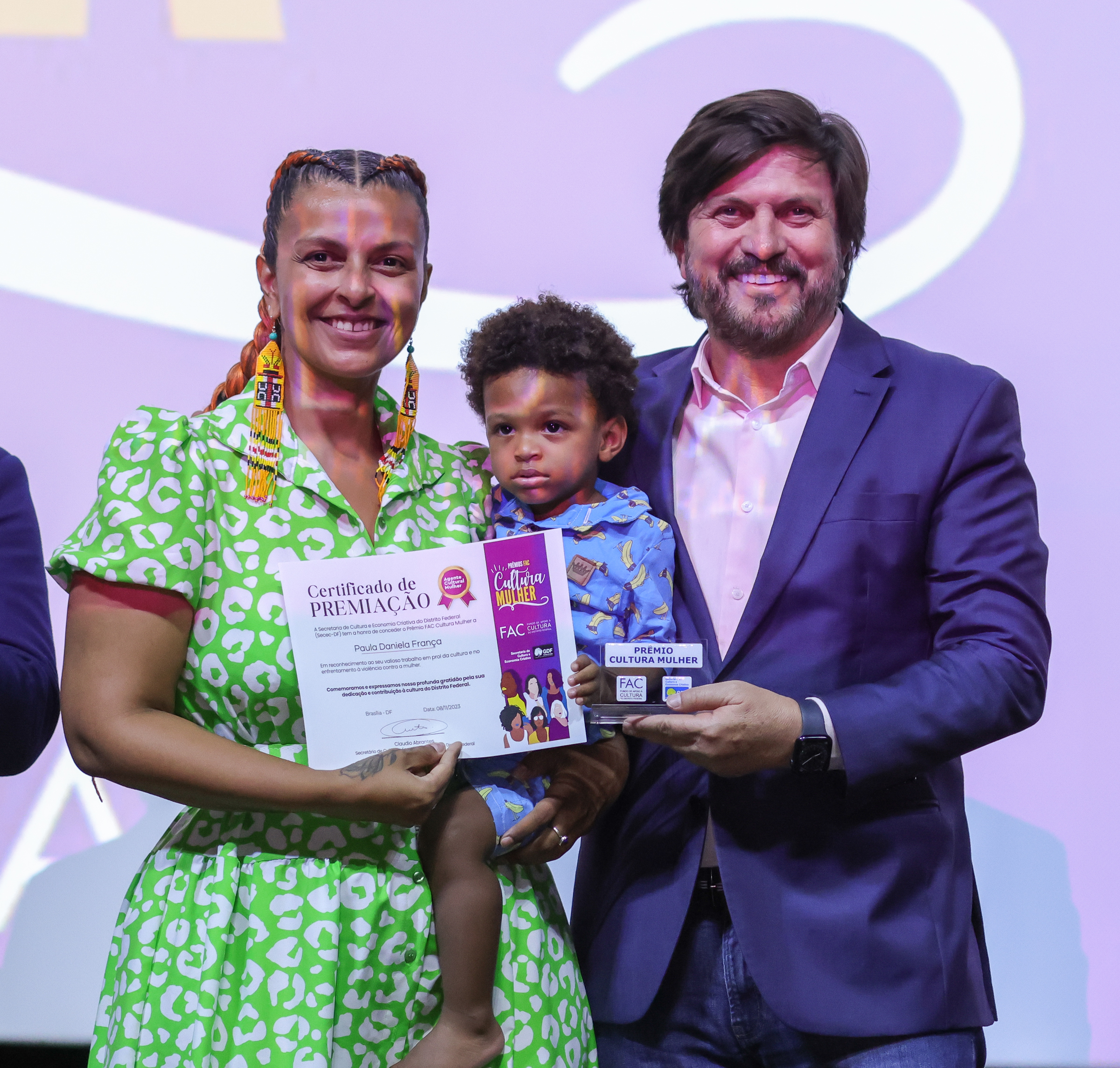 Foram entregues, na noite desta quarta-feira (8), os prêmios FAC Mulher, iniciativa da Secretaria de Cultura e Economia Criativa do DF (Secec-DF) em reconhecimento aos artistas locais e pluralidade cultural. Esta edição do evento homenageou o trabalho de representantes das categorias, Geral, PcD, 60+, Negras, Quilombolas, Indígenas e Entidades. O júri técnico de avaliação foi composto por mulheres cis e trans, representantes do governo e da sociedade civil, sendo 50% delas mulheres negras.