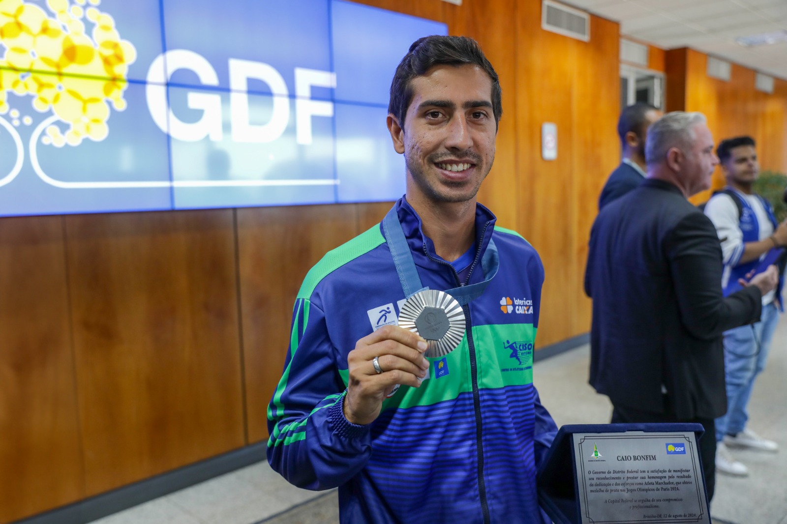 Em seu discurso, Caio Bonfim lembrou que o apoio recebido foi determinante para que ele não precisasse se mudar de Brasília para seguir no esporte: “Hoje posso dizer que sou medalhista olímpico morando, vivendo e treinando em Brasília. Um dos meus adversários, eu encontrei lá [em Paris] e falei: ‘você vai para a competição X?’. Aí ele disse: ‘não, eu não tenho o Compete [Compete Brasília, programa da Secretaria de Esporte e Lazer do DF]. Até os adversários sabem que esse programa funciona, que é bom, que é importante”.