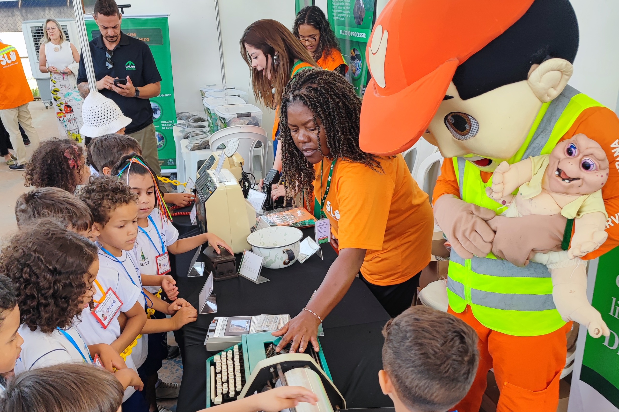 “A separação dos resíduos, por exemplo, se você explicar pra um adulto, ele não vai fazer. Mas se você der como desafio para a criança, ela ainda vai ensinar para o pai como é que faz”, comentou a secretária de Educação, Hélvia Paranaguá (primeira à esquerda)