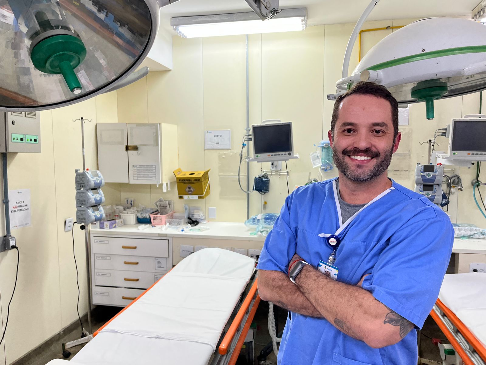 Um dos emergencistas da equipe é Paulo Guilherme Santos, de 36 anos, que integra o time desde janeiro. Ele escolheu a especialidade pelo dinamismo e pela necessidade constante de decisões rápidas e procedimentos urgentes. “Atendemos todos os tipos de emergência – traumas, casos ortopédicos, obstétricos e pediátricos –, mas o foco principal é a clínica médica”, relata.